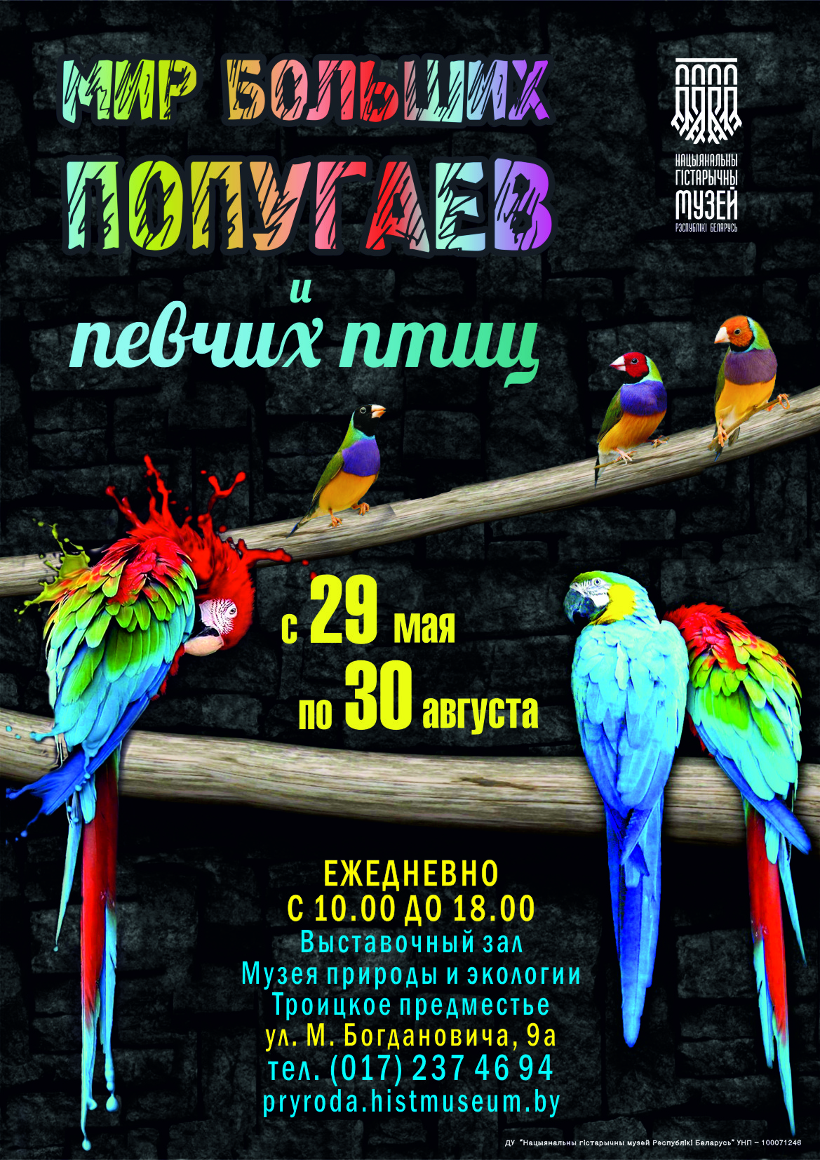 Посетителей ждёт знакомство с 40 разновидностями птиц. В рамках выставки всем гостям представится возможность увидеть: говорящего ара, большого белохохлого какаду, эклектуса, алохвостого жако, венесуэльского амазона, амадин, дальневосточного урагуса, чечетку, зяблика, овсянку и многих других птиц, которые покорят вас своей красивой песней и яркостью оперения.
