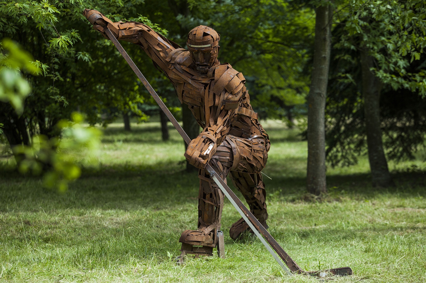 Кроме того, художники подготовили «Экологический букет», «Сырный стул» и «Рыбный день», а самой человекоподобной скульптурой оказался «Железный хоккеист»: металлическую фигуру спортсмена получили при помощи сварки и покрыли «ржавой» патиной.