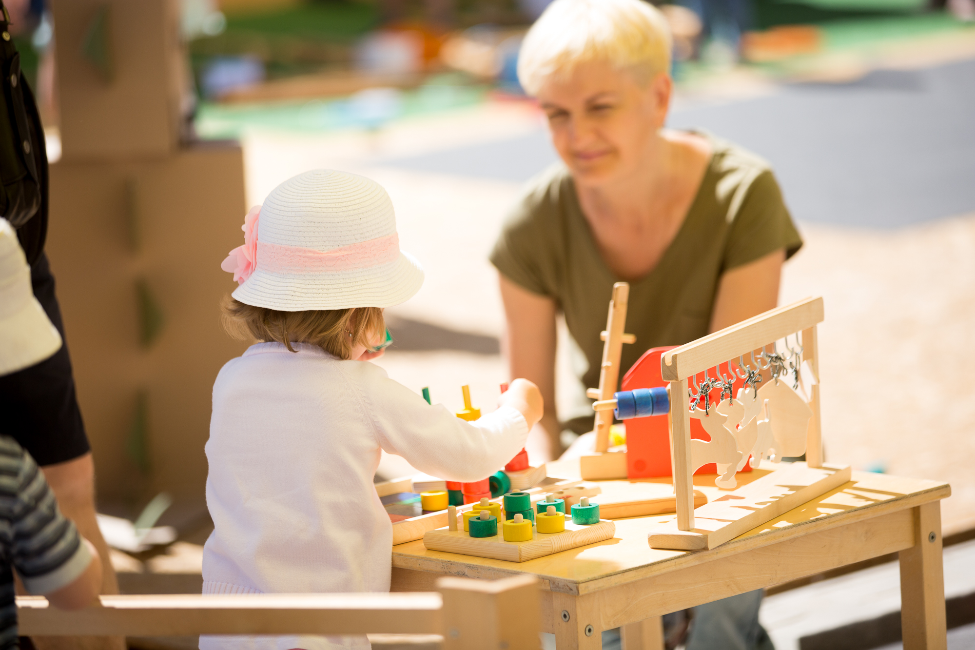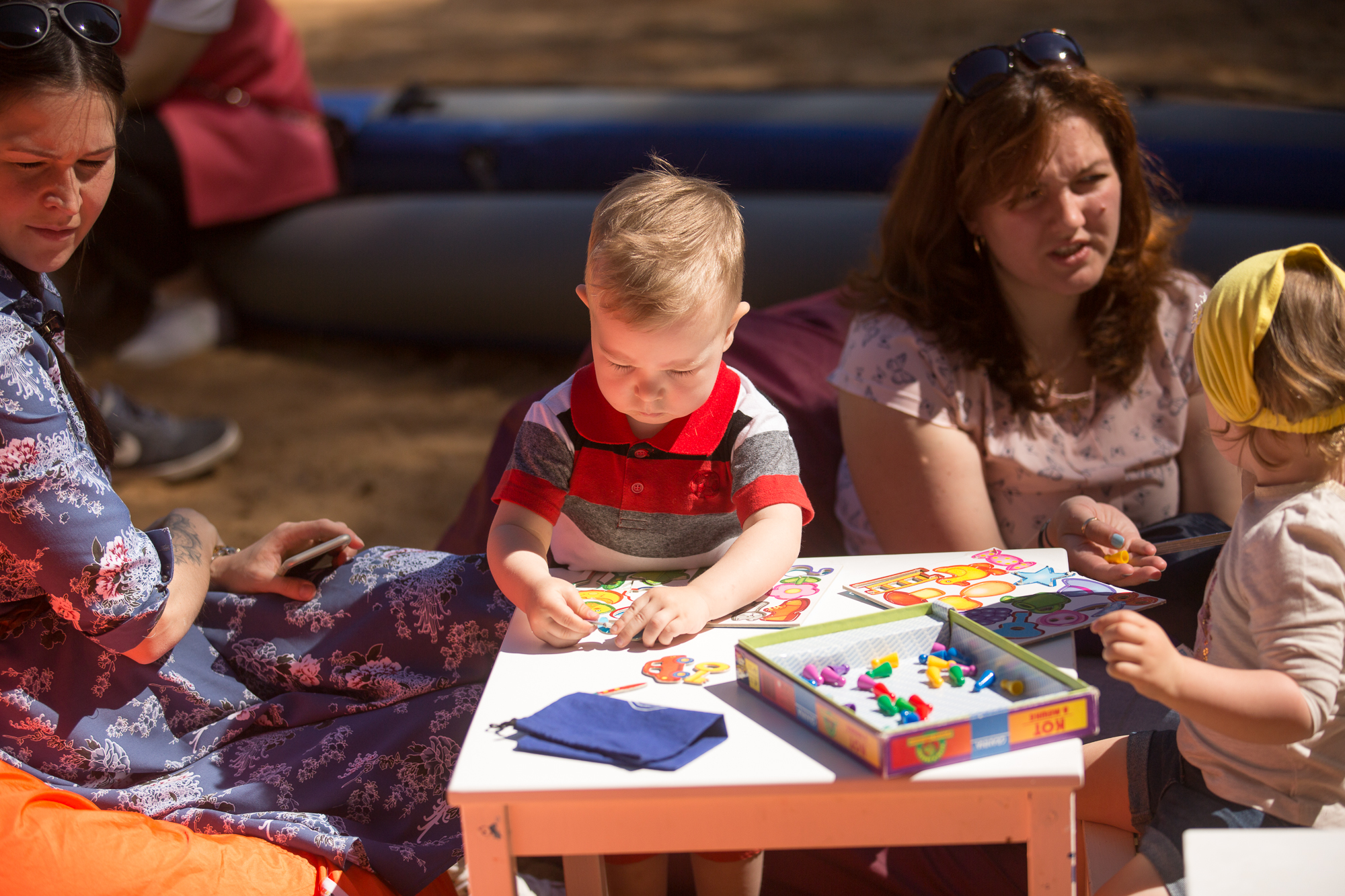 Семейный пикник – это мероприятие, где играть и веселиться можно везде. Чего только тут не было: роботы-трансформеры, картонные динозавры, которых норовили примерить даже взрослые, зона лего. Для самых маленьких гостей фестиваля была организована зона с развивающими игрушками из натуральных материалов по методике Монтессори: гладильная доска, сушилка для одежды, различные сортеры, интересный телефон-таксофон и многое другое.