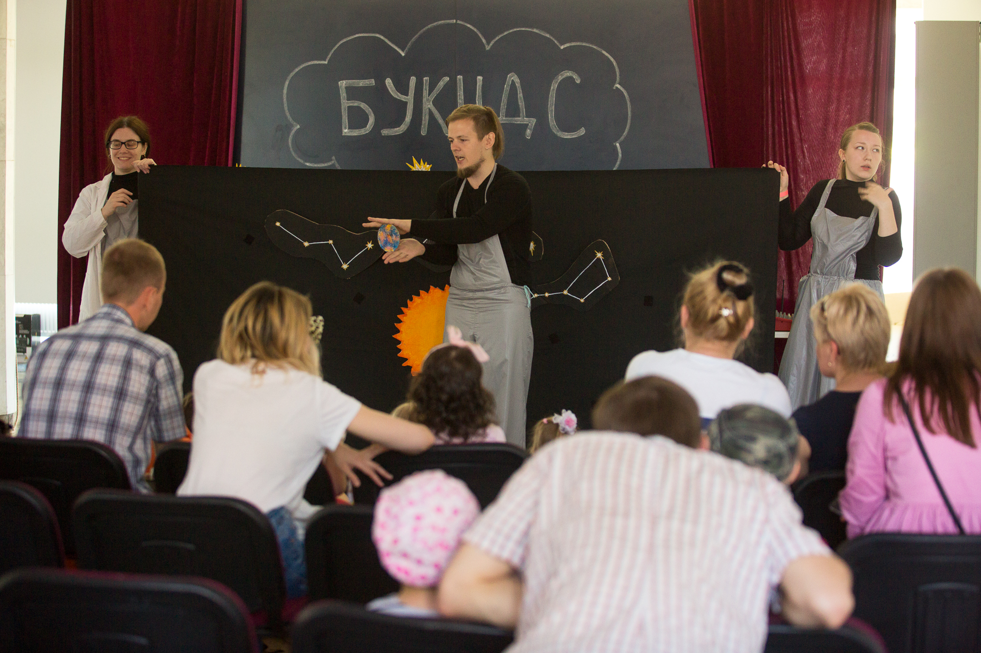А в соседнем помещении шли спектакли. Дети знакомились с героями сказок «Три поросенка» от театра кукол, света и тени «Дом Солнца», «Космические приключения Ми-мя» студии «Варгiн» и «Правдивой истории» от театра «Растармошка».