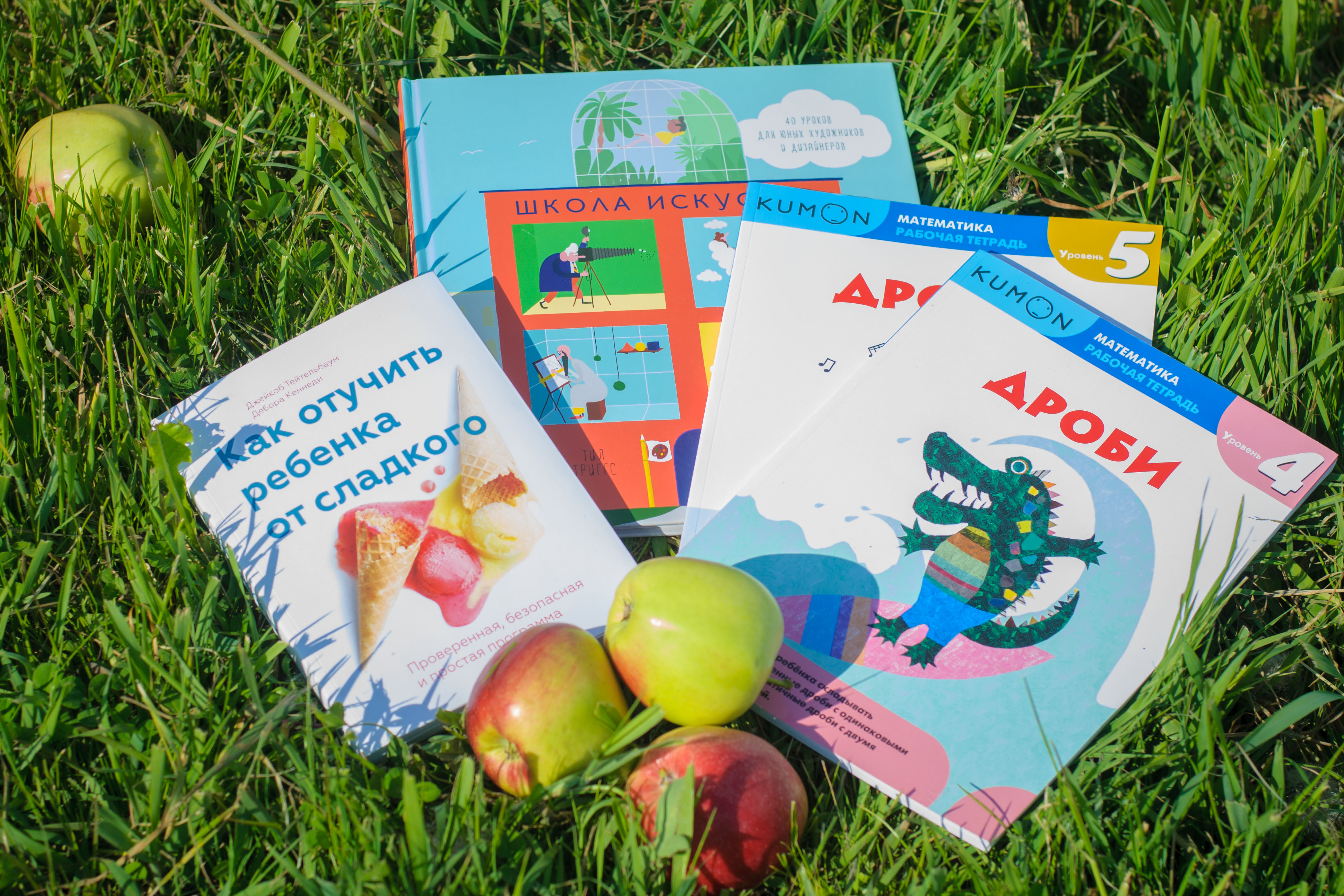 Как убедить ребенка, что сладкое не всегда полезно? Как объяснить дроби с первого раза? И как привлечь к творчеству? Хотя бы однажды вы наверняка задавались одним из вышеуказанных вопросов. Издательством «МиФ» в очередной раз нашло ответы на злободневные вопросы, выпустив сразу три интересные и полезные книги в первую очередь для родителей: «Как отучить ребенка от сладкого?» Джейкоба Тейтельбаума и Деборы Кеннеди, серию пособий «Kumon. Математика. Дроби. Уровень 4» и «Kumon. Математика. Дроби. Уровень 5», «Школа искусств» Тил Триггс и Дэниела Фроста. Казалось бы, книги разные, но мы нашли одно общее звено, на примере которого вы можете объяснить ребенку все-все. И этот незаменимый помощник – яблоко. Яблоко – самый обычный фрукт, вокруг которого и будут строиться наши рекомендации.
