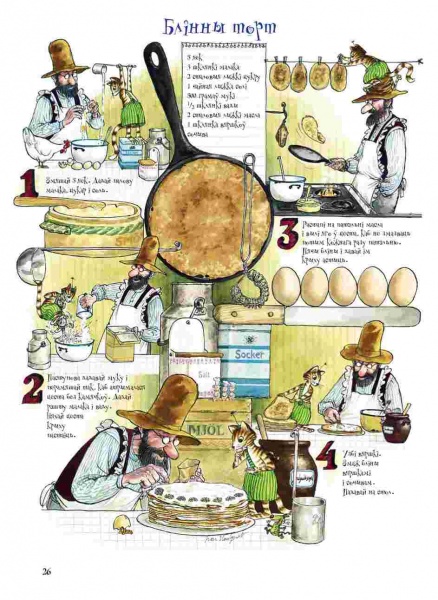 Любая книга из серии «Петсон и Финдус» поднимает настроение. Красивые иллюстрации, смешные проказы Финдуса, неуловимые мюклы и вездесущие курицы – все это уютный мир детства. И как же приятно перенести книжную атмосферу в реальную жизнь. С кулинарной книгой это сделать еще проще!