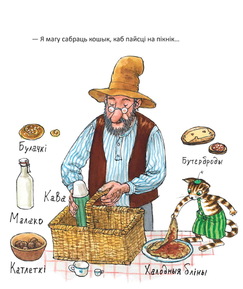 Книга в мягком переплете и с шикарными иллюстрациями Свена Нурдквиста. Ее можно пересматривать снова и снова.