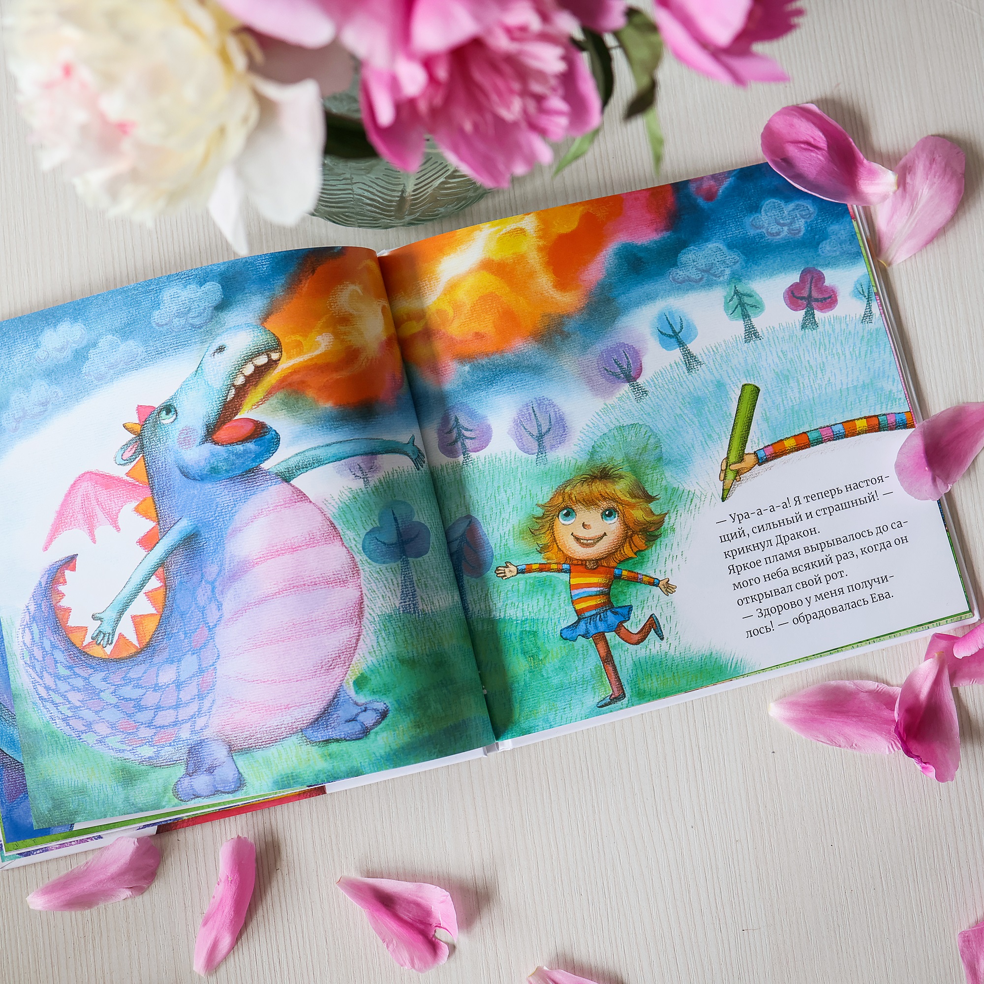 Среди прочих идей я выбрала Еву, потому что она — мой внутренний ребенок. Она любит цветные карандаши и большие листы белой бумаги, ей хочется упорядочить мир вокруг себя, а иногда ей хочется, чтобы ошибки и трудности можно было просто перерисовать или стереть ластиком. Для читателей книги про Еву это возможность поговорить с детьми о сострадании, помощи, отношениях с друзьями, конфликтах и о том, что все можно исправить.