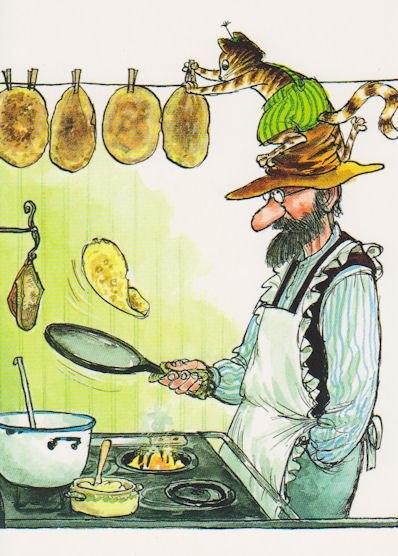 У каждой хозяйки, большой и маленькой, должна быть своя кулинарная книга. Одной из первых книг по приготовлению еды для вашей малышки может стать книга «Готовим вместе с Петсоном и Финдусом». Вместе с полюбившимися героями из серии о забывчивом старике Петсоне и неуемном коте Финдусе вы научитесь готовить любимые тефтельки Финдуса, знаменитый «именинный пирог» (секрет рецепта раскрывается только вам), рождественское печенье, весенние щи из крапивы и много-много другое. Всего в кулинарную книгу вошло более 30 рецептов. А если у вас не будет получаться, то помните «Если у вас и седьмой блин комом, забудьте про блины, пеките комочки!».