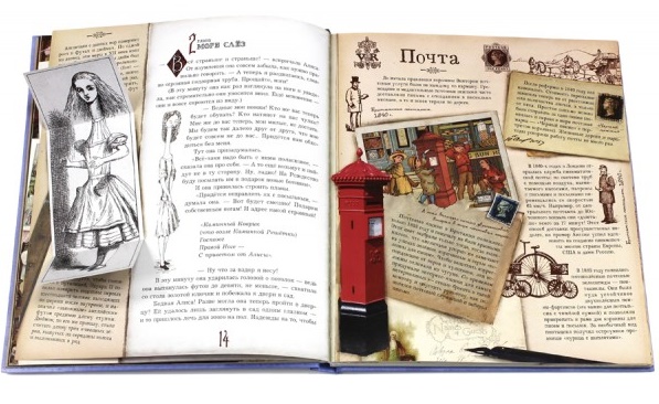 Сказка Льюиса Кэррола уже столько раз переиздавалась, экранизировалась, что не сосчитать. Но есть отдельные книги, о которых вспоминаешь с особым настроением и любовью. Книга «Приключения Алисы в Стране Чудес» под издательством «Лабиринт» одна из них. Помимо волшебных приключений Алисы в Стране Чудес, безумного Шляпка и других героев, вы сможете оказаться в викторианской Англии. Вы и ваша дочь увидите рисунки, гравюры, заметки, страницы из журналов и книг той далекой эпохи. Познакомитесь с историко-бытовыми ситуациями страны, которой была Англия 150 лет назад.