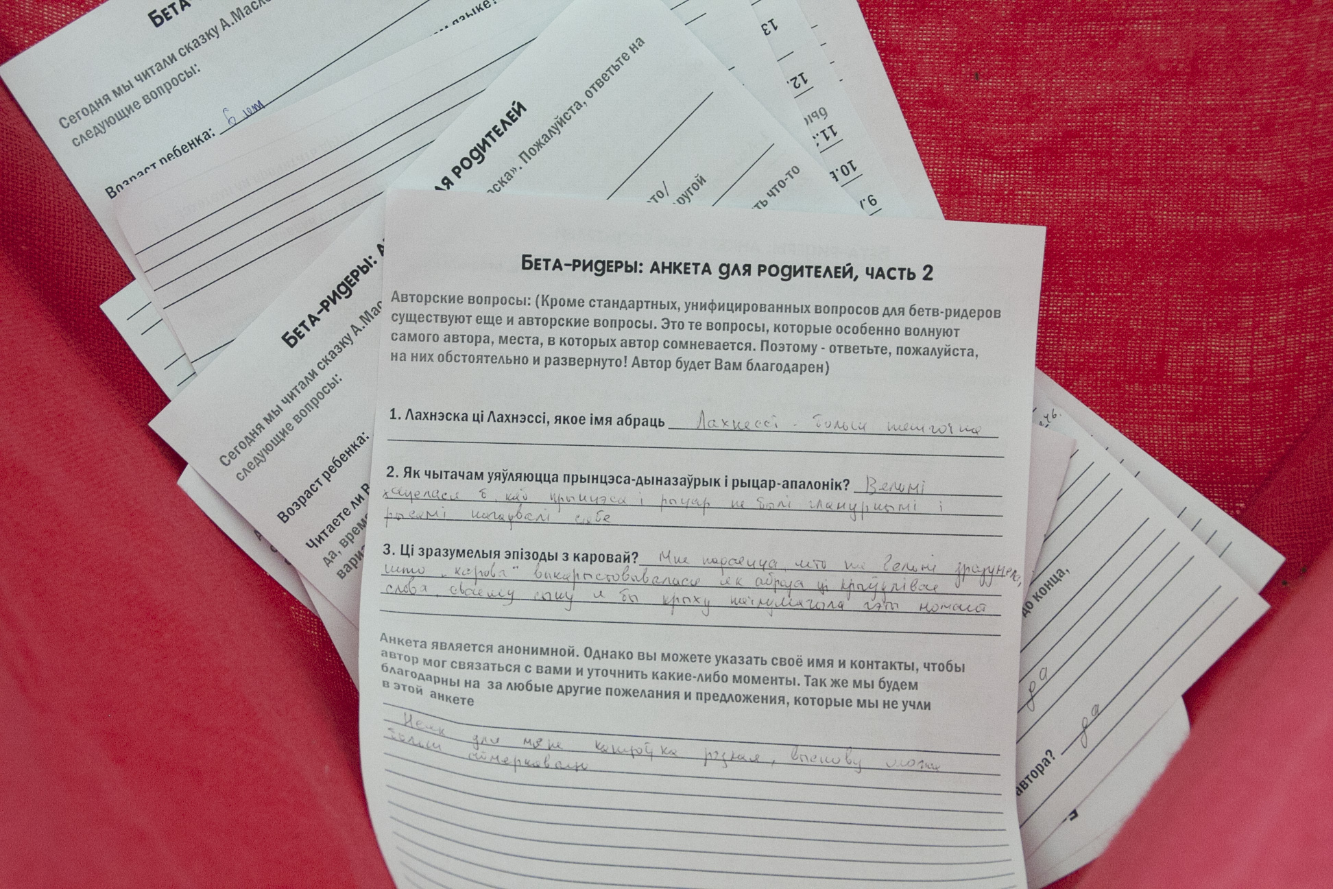Все анкеты Алена Масло забрала с собой, пообещав прочитать изначальный текст и внести в него изменения. Что же касается детей, то их оценка была видна уже в начале мероприятия – все до единого тестировщики дослушали сказку на белорусском языке до конца. Разве это не самая лучшая оценка для писателя?