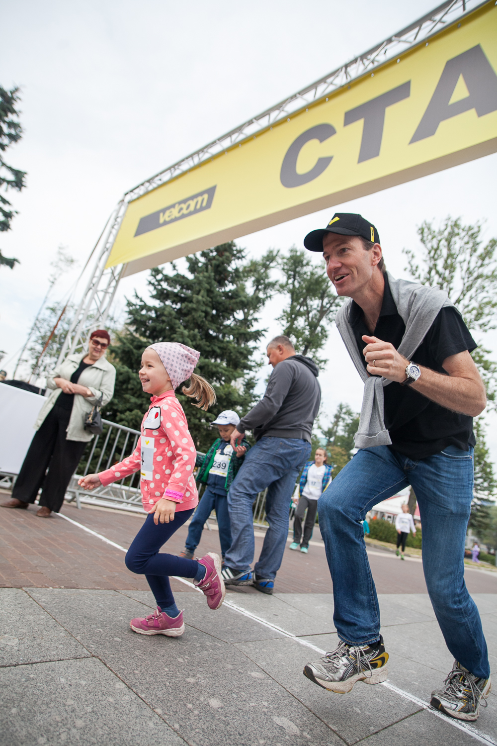 После официального старта акции чемпионка провела разминку для ребят. А открыли благотворительный забег самые маленькие участники - 4 лет, которые пробежали 50-метровую дистанцию вместе с Алиной Талай и веселыми аниматорами.