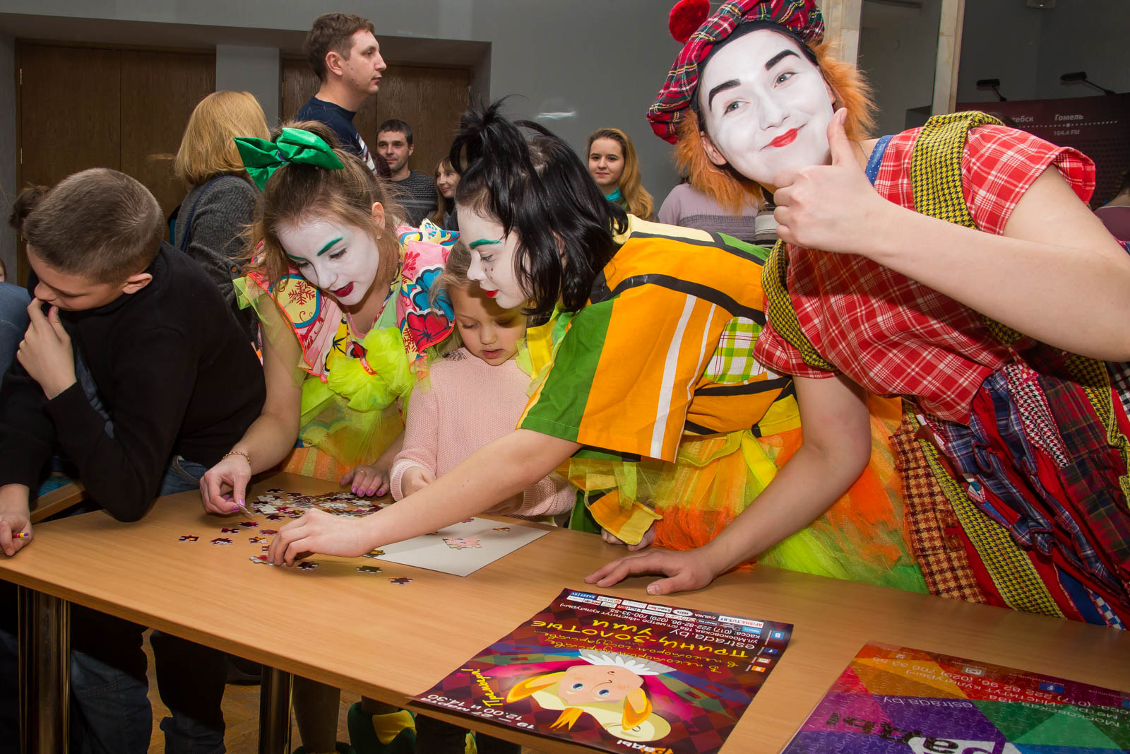 В ожидании спектакля в фойе для взрослых, но все же больше для детей, была установлена тантамареска, где гости могли перевоплотиться в главного героя представления – Принца, собрать яркий пазл, поиграть с мимом и даже получить сладкий подарок. Чем не сказка? А ведь это было только в фойе.