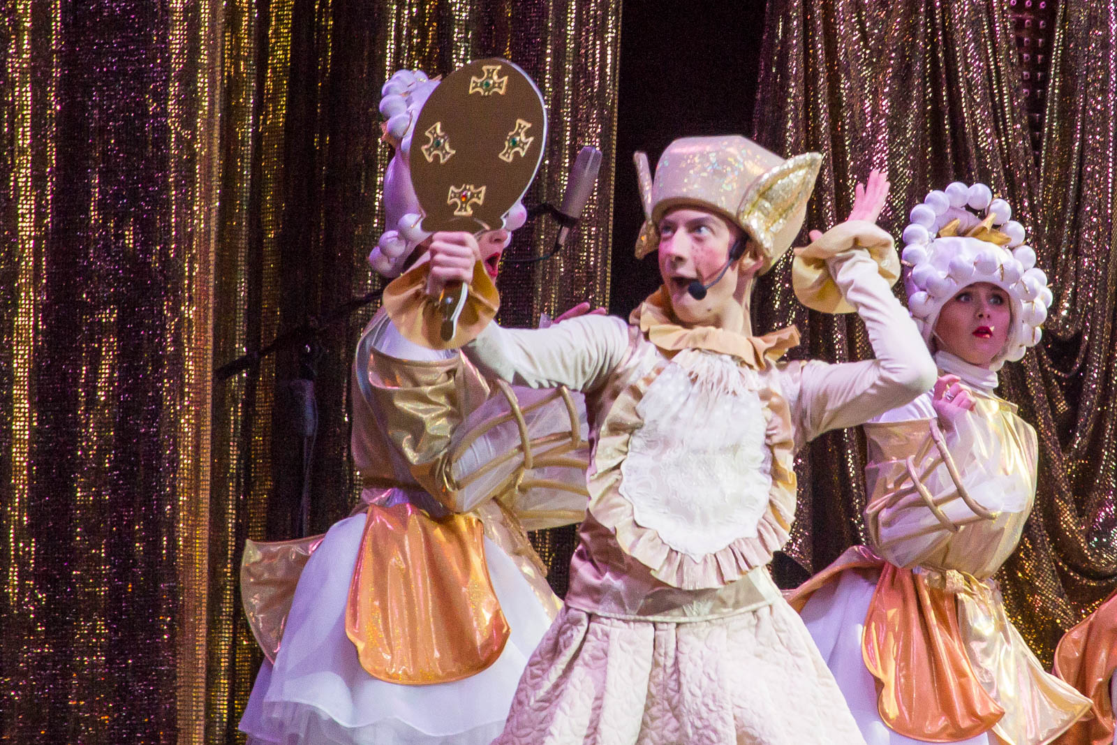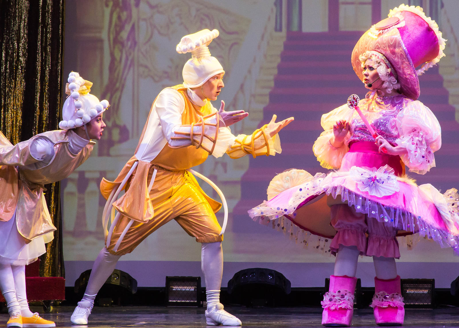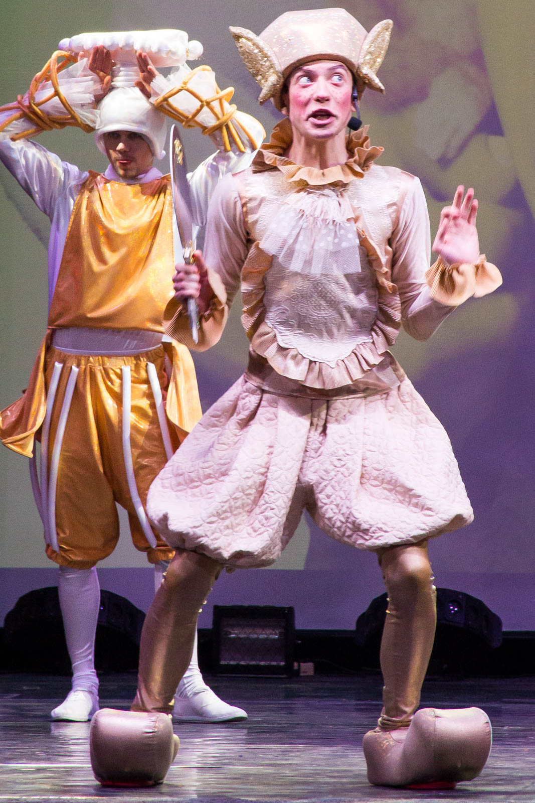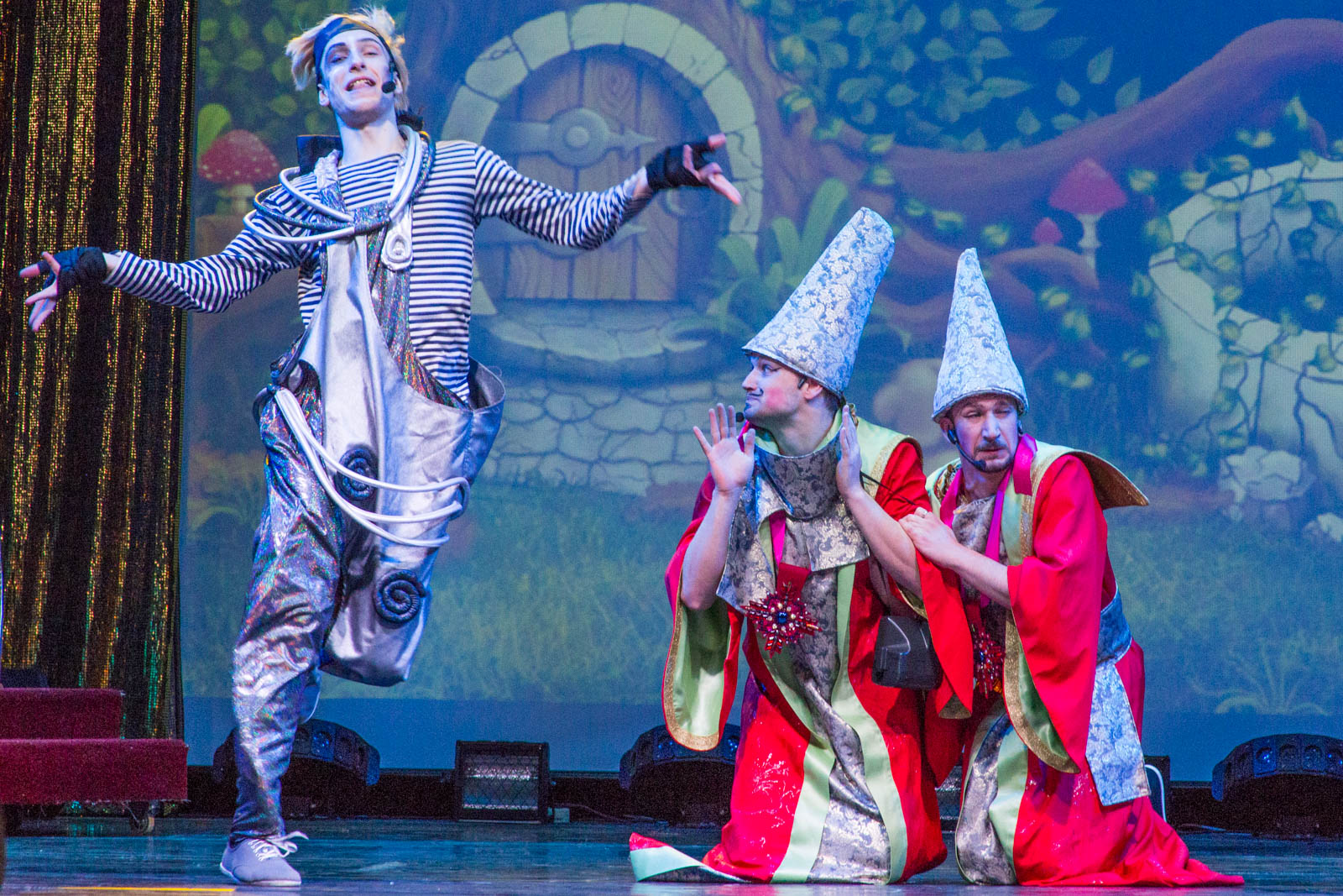 поучительный музыкальный спектакль. Премьера мюзикла «В некотором царстве, в некотором государстве… или Принц-золотые уши», написанного художественным руководителем театра Вячеславом Паниным, состоялась 19 марта. Веселая атмосфера волшебного королевства царила уже при входе в театр: задорные клоуны встречали детей, с каждым здоровались, фотографировались и провожали в гардероб.