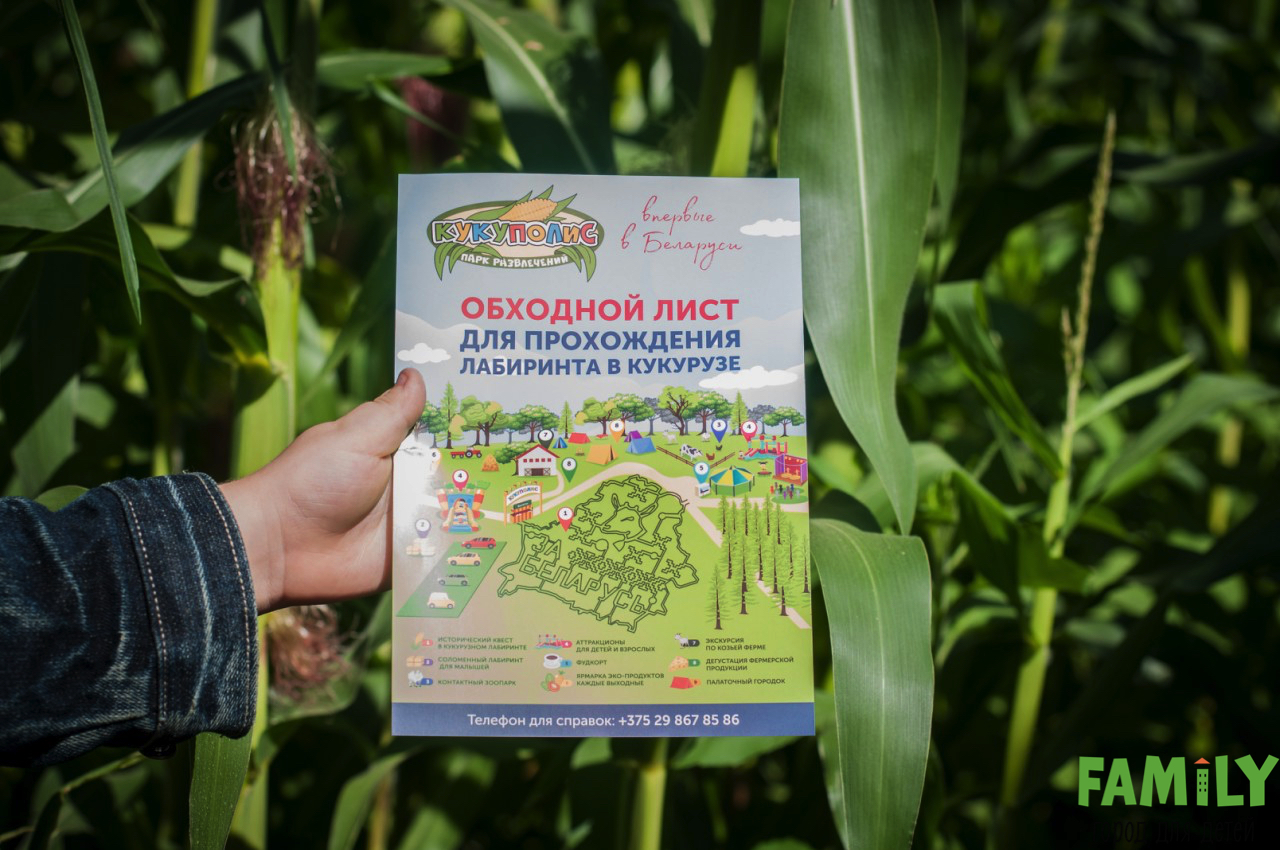 Самое большое сооружение, а также предмет гордости «Кукуполиса» - большущий лабиринт, который вырезан под открытым небом в кукурузном поле. Площадь лабиринта – 2 гектора. Это очень необычно и масштабно для городских жителей, а тем более детей, которые с интересом и опаской заглядывают в кукурузное царство. Лабиринт тематический: в первый год – это была карта Беларуси, в 2024 году – портрет козы.