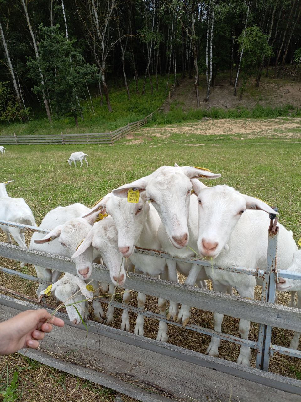 Прогулка в вагончике, который везет трактор «Беларусь», через небольшие горки, поля и лес не оставят равнодушными маленьких гостей. По дороге экскурсовод рассказывает о жизни фермы, приводит много интересных фактов о козочках и белорусской природе. У гостей также есть возможность погладить и покормить белоснежных и дружелюбных козочек. Кстати, всего на ферме живет более 1100 коз.