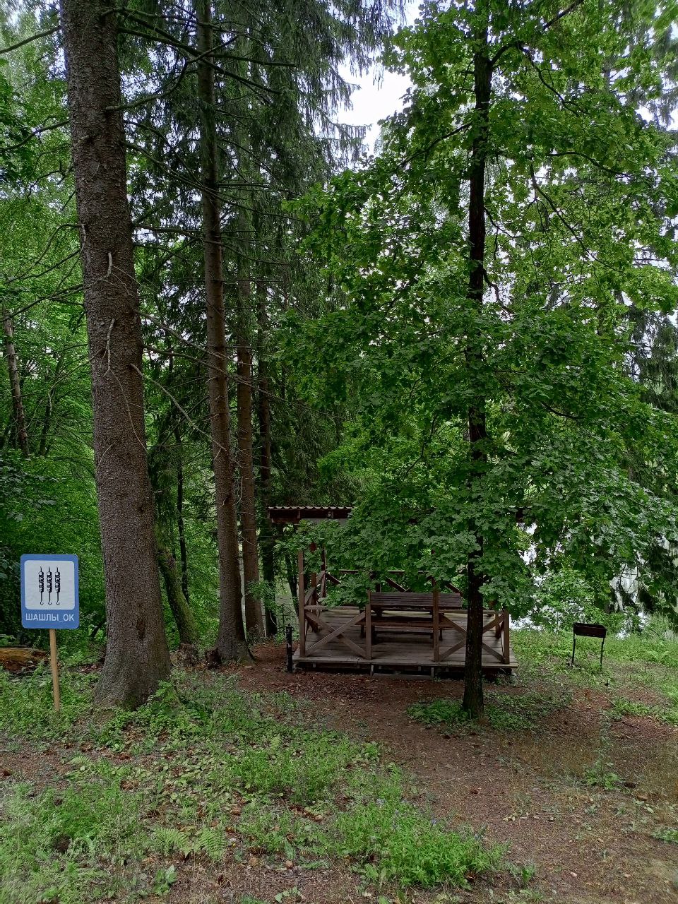 Ну а после активного отдыха хочется немного перевести дух в тени деревьев – и тут на выручку приходит зеленая трава и лаунж-зона с беседками на берегу озера. Спуск к воде облагорожен, но он достаточно крутой, не советуем отпускать детей одних.
