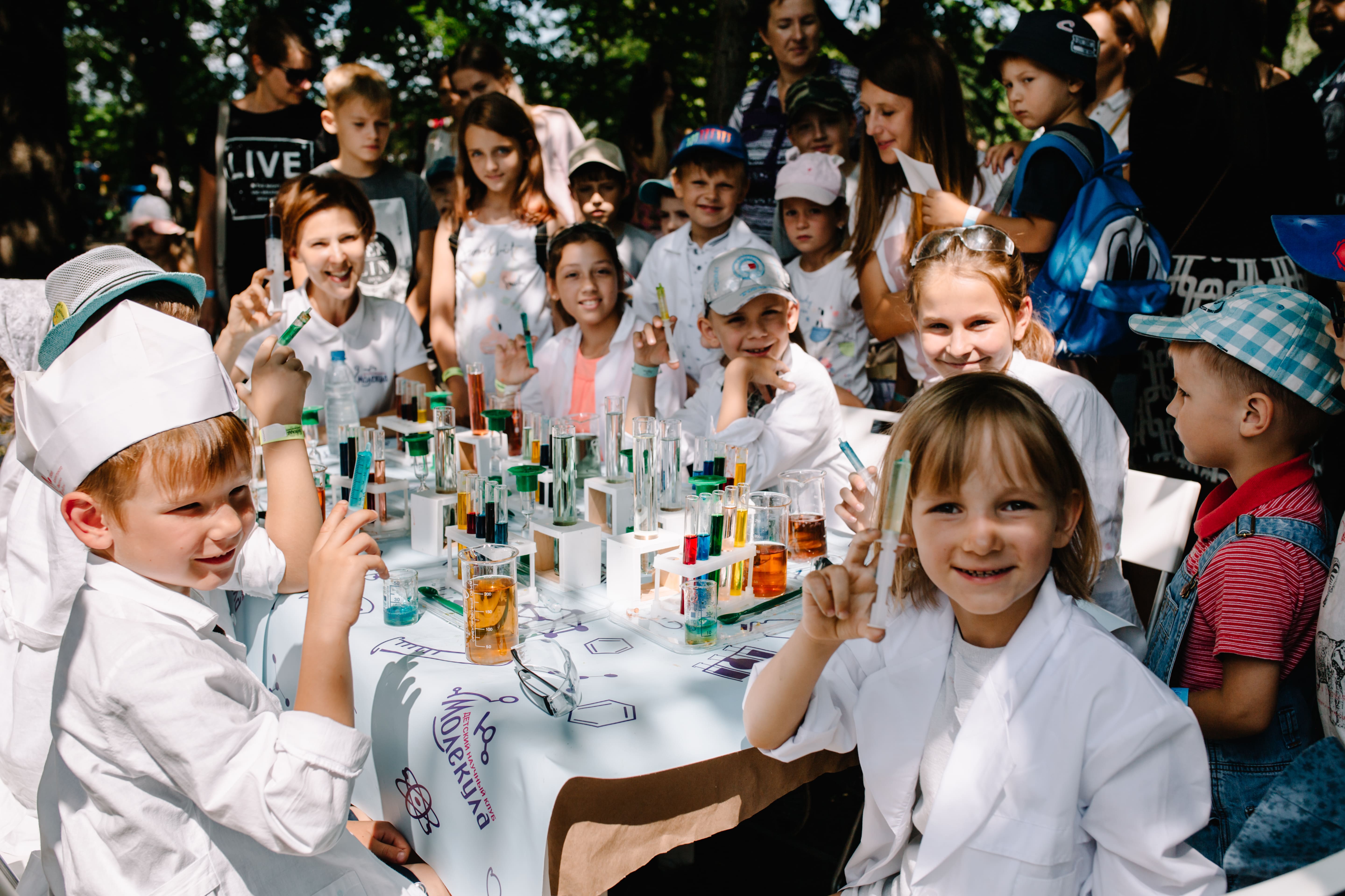 Для юных ученых был создан Научный город, где представили профессии: химик, биолог, физик, археолог, программист. пространства, декоратор, мороженщик - даже взрослым будет интересно участвовать в активностях фестиваля.