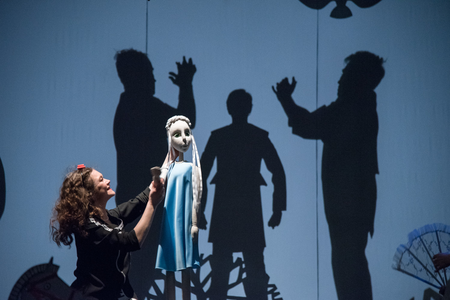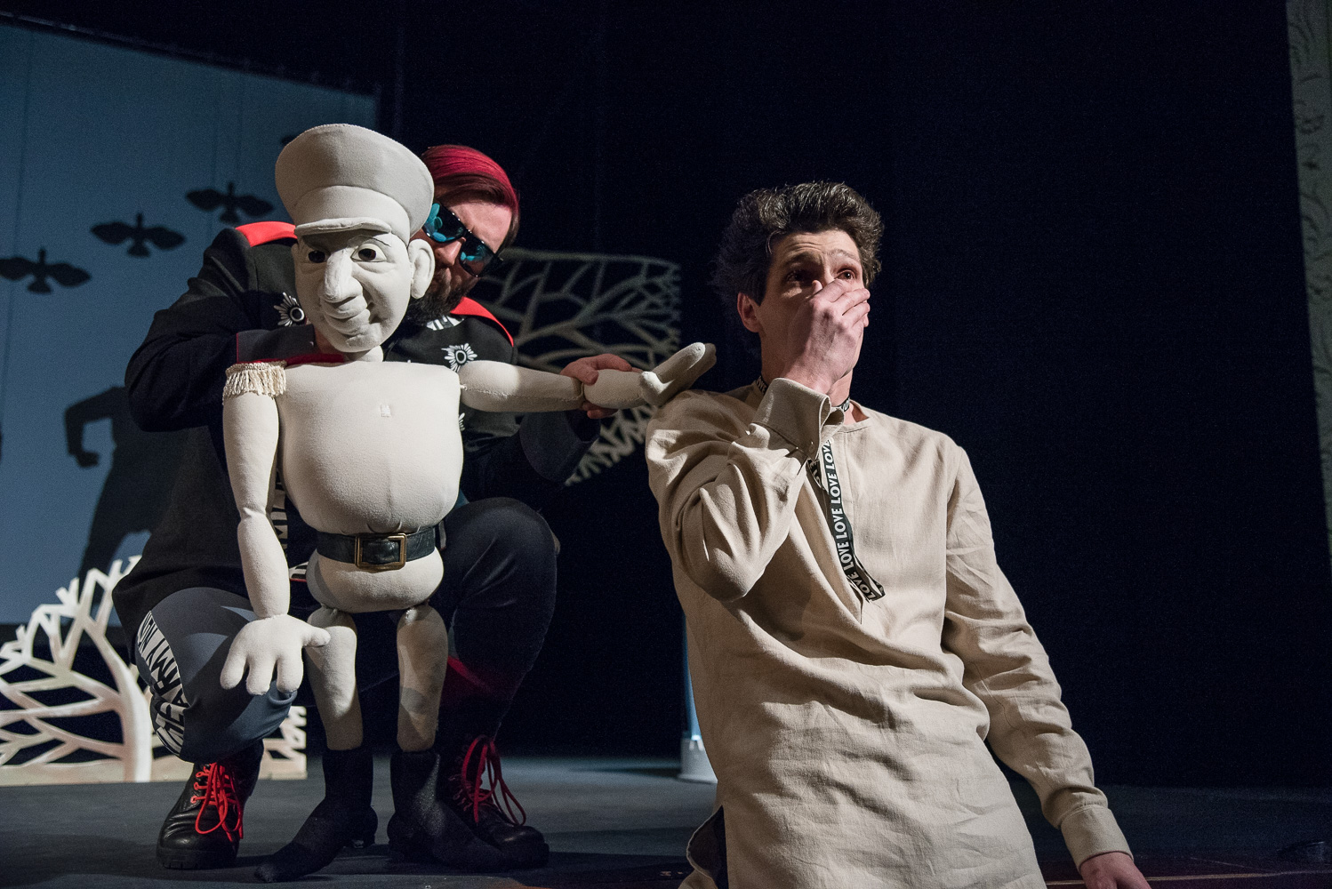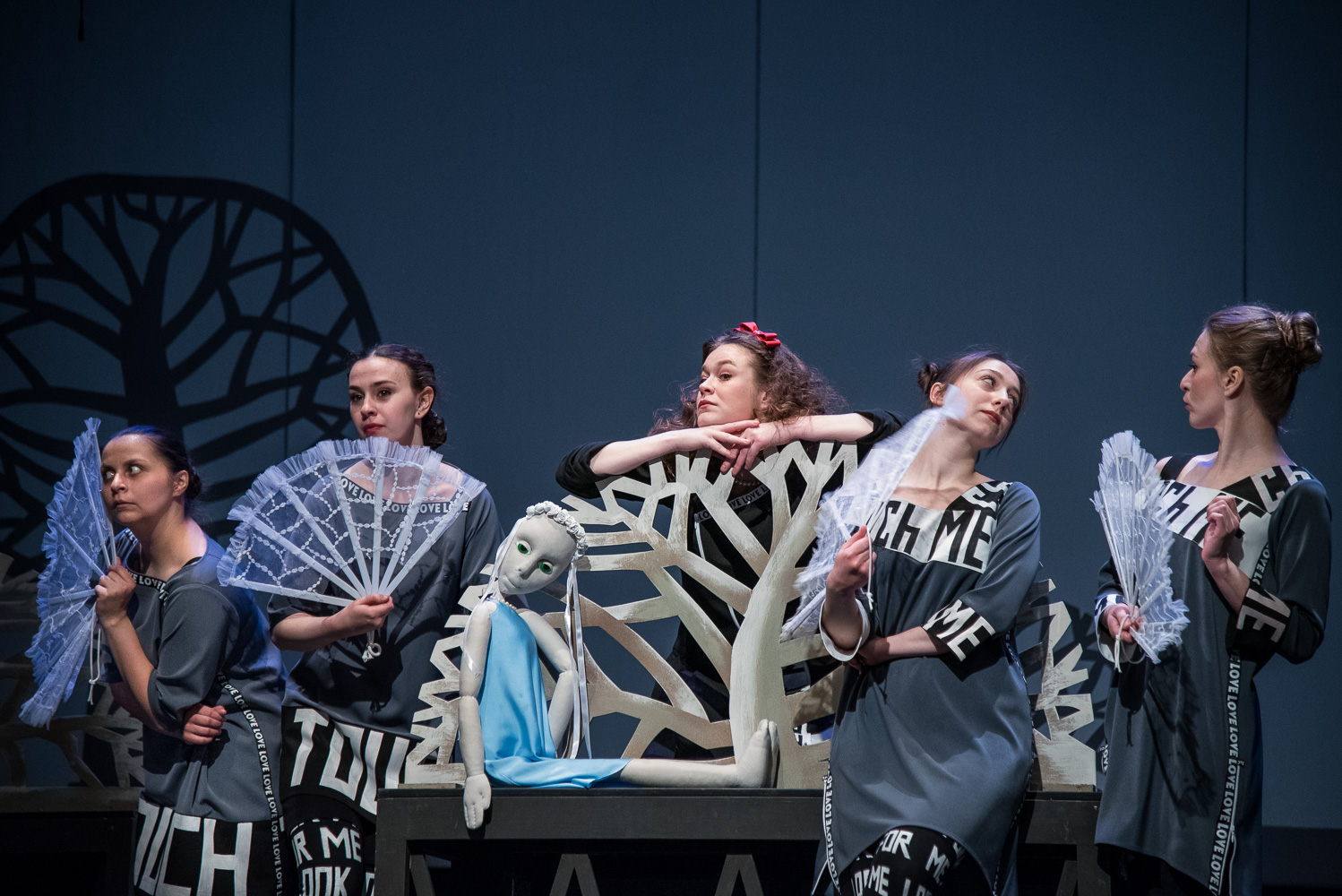 На сцене играют живые актеры и красивые куклы от скульптора Натальи Кудашкиной. Управление куклами безупречно – даже просто размещаясь на декорациях, они умудряются «играть» в спектакле. А мастерство актеров на таком высоком уровне, что сквозь закрывающие лица маски видна каждая проявленная эмоция. И это поистине завораживает!