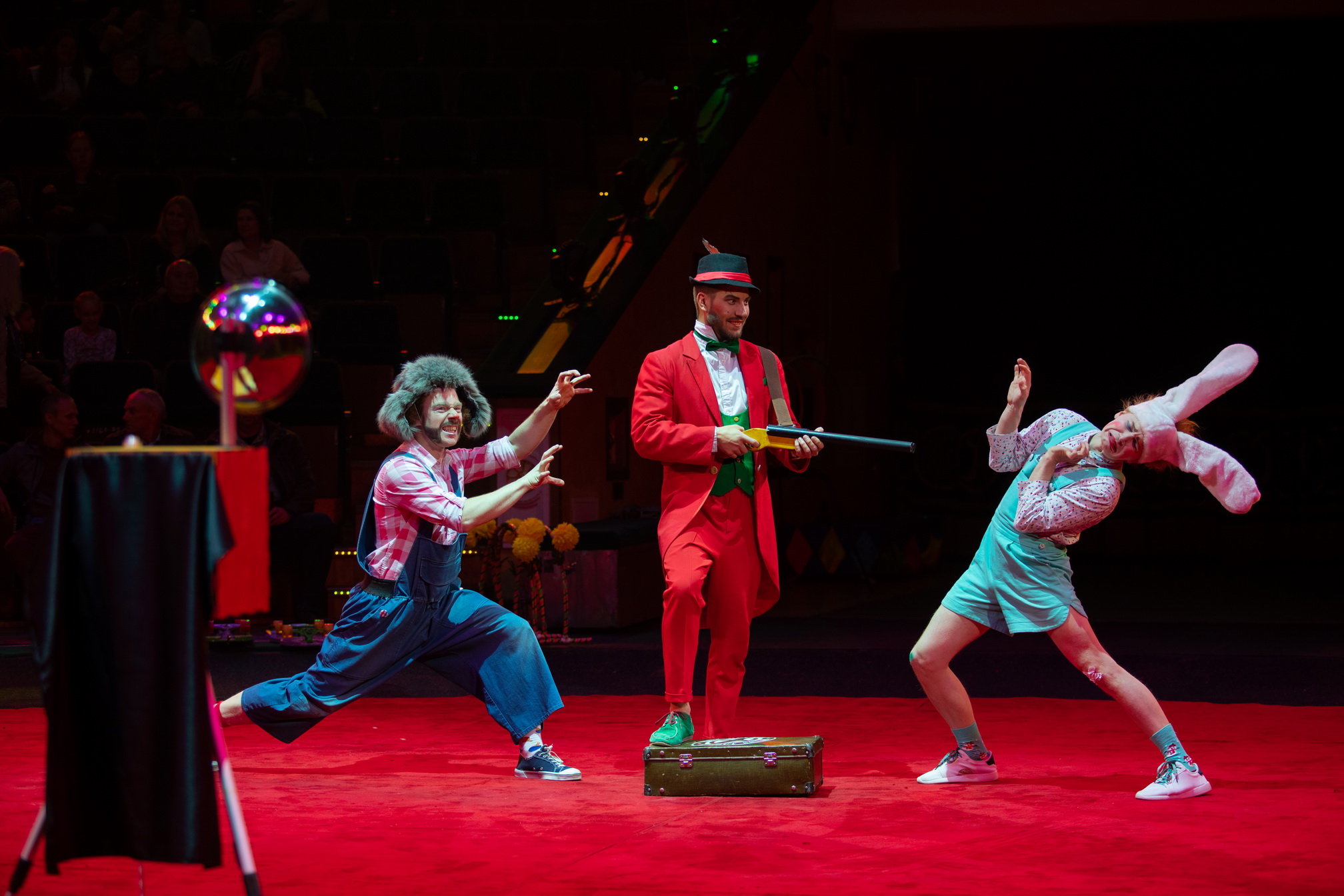 Долю юмора и веселья внесло клоунское трио «Без Носков!». Уральские клоуны привезли в Минск искрометный смех и четыре номера: «Фотоаппарат», «Доска», «Комары» и «Рок». Клоуны удивляли публику трюками и яркой актерской игрой: танцевали, кривлялись, фотографировались и вовлекали зрителей в свое шоу. Каждый выход актеров на манеж дети и взрослые встречали радостными возгласами, а провожали бурным смехом.