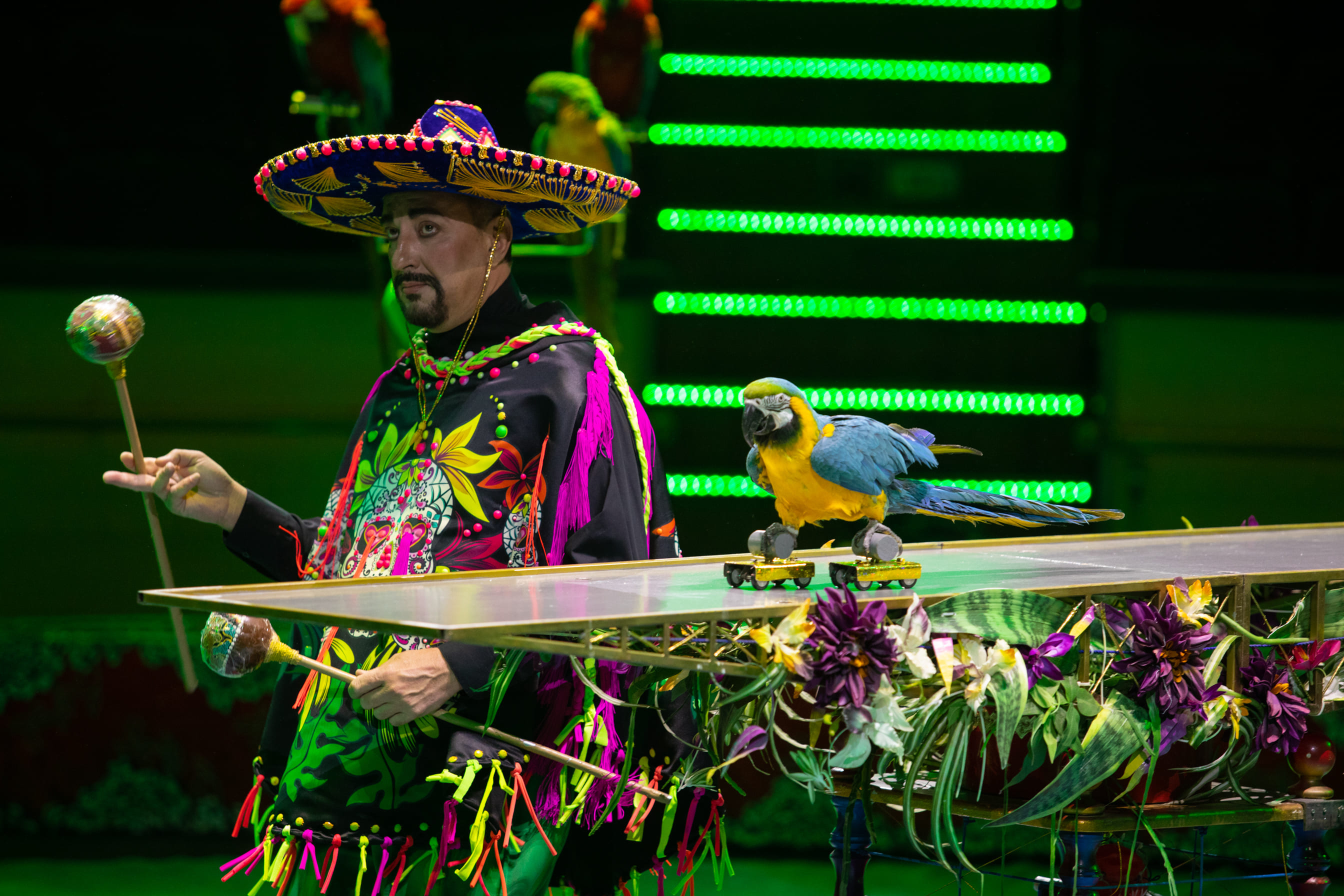 В не менее жаркую Южную Америку зрители попали во втором отделении. Танцовщицы с карнавала в Рио показали зажигательный танец, а мексиканец и его яркие пернатые друзья – попугаи ара – так лихо отплясывали, что некоторые зрители не усидели на месте и присоединились к веселью.