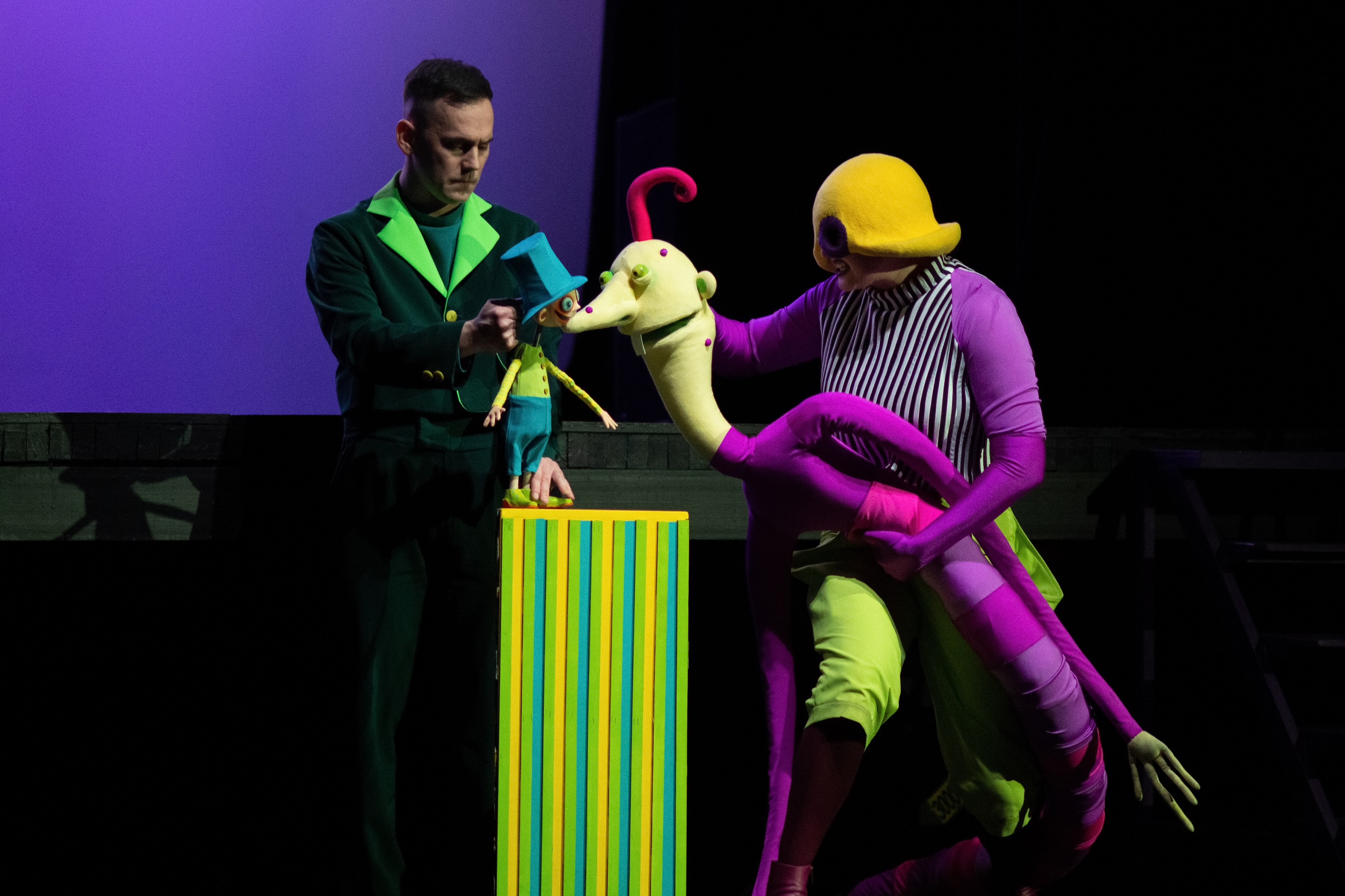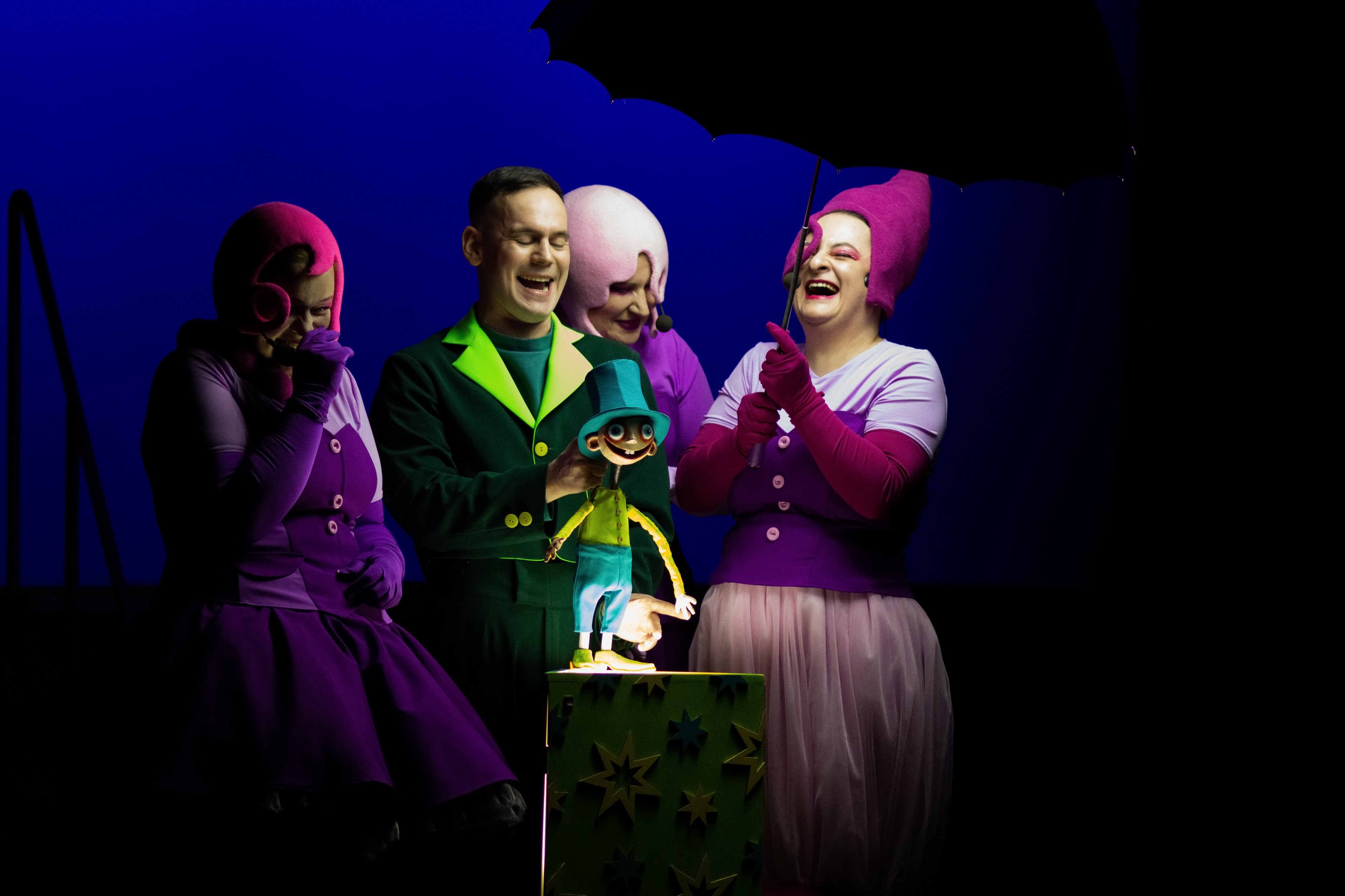 Все действия проходят на фоне невероятно красивых декораций, музыкальных вставок, светового шоу, игры со зрителями. Евгений Корняг, режиссер спектакля, очень легко, азартно, без намека на нравоучения, с юмором и мистикой, граничащих с магическим шоу, поднимает вечные темы добра и зла, финансовой наживы и душевного спокойствия, дружбы и одиночества. И рычагом для философских тем служит неуемная фантазия, ирония, вкус и изобретательность в оформлении сцены, актеров и музыки (кстати, все песни звучат в живом исполнении). Когда смотришь это все в зале, то кажется, что попадаешь в работы Тима Бертона. И проживаешь все два акта на одном дыхании с одним лишь желанием, чтобы этот невероятно мистический мир не исчез.