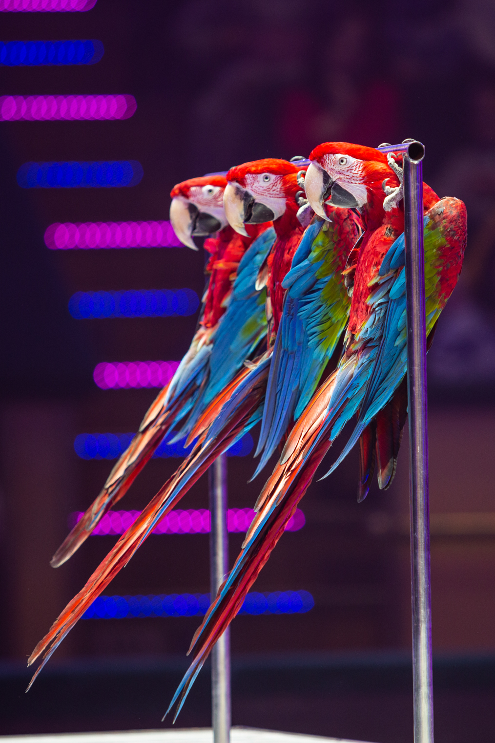 В этот раз на арену цирка выходили и настоящие животные: яркие попугаи, красивый дикобраз, невероятных размеров змеи, неспешные верблюды и буйволы, юркие псы.