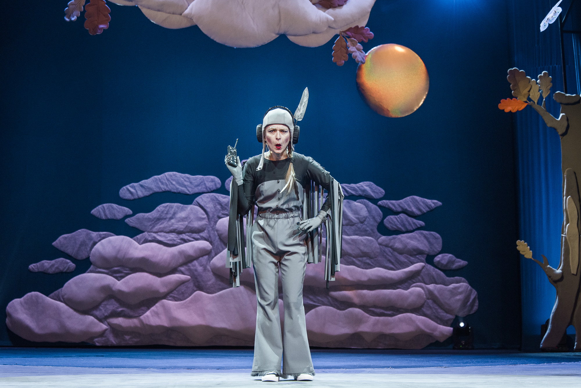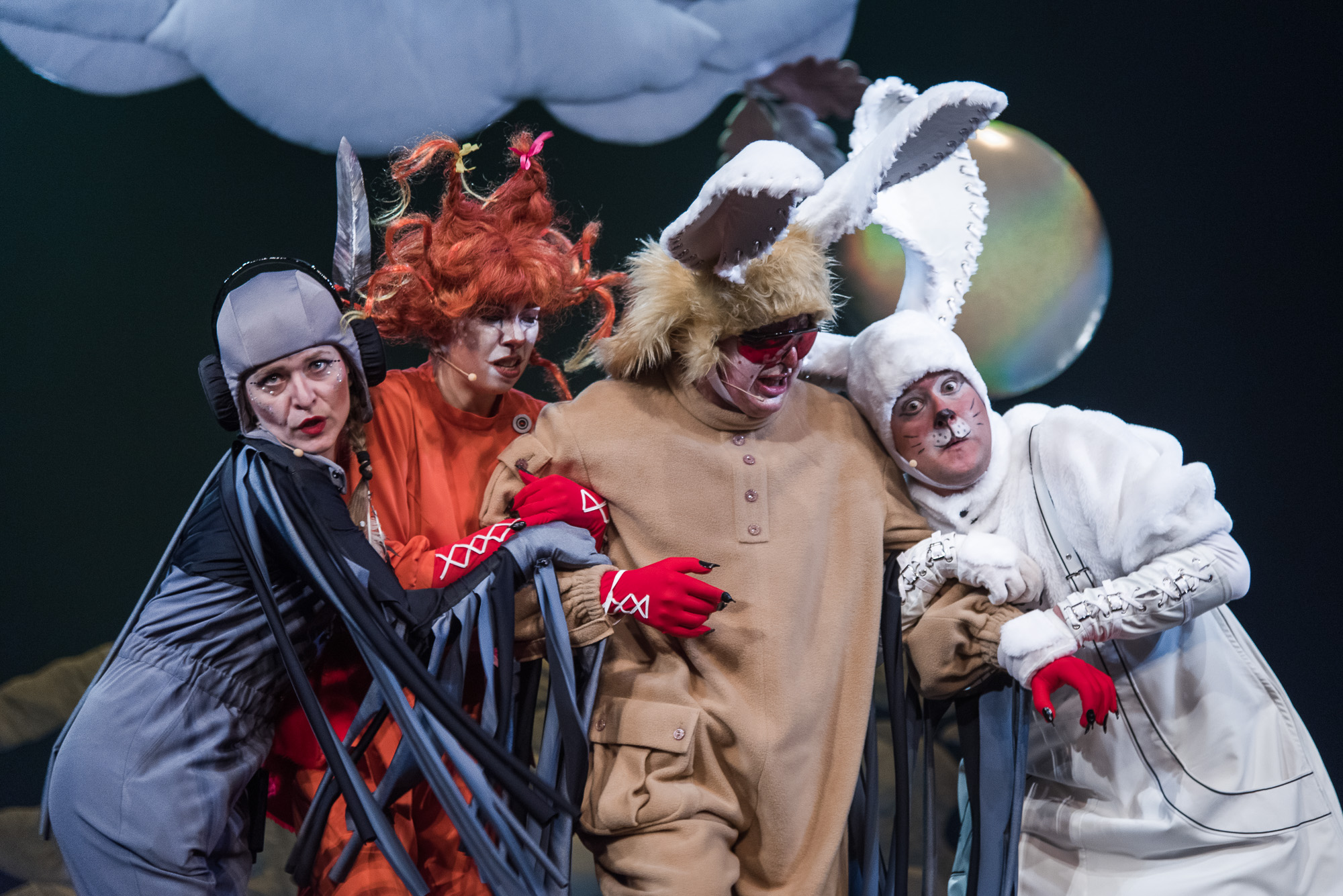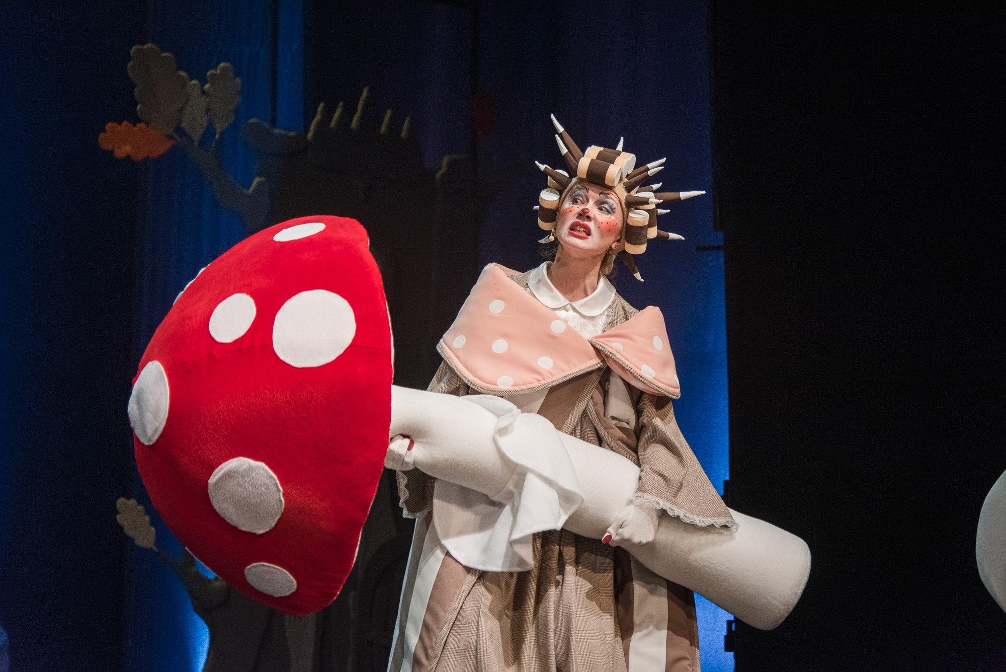 Все герои очень яркие и живые, они прекрасно передают характеры: Ёжик – маленький, обидчивый ребенок, Заяц – харизматичный забияка, Белочка – энергичная, юркая, но очень подвержена чужому мнению, Ежиха – заботливая и любящая мама, которая пусть и не сразу, но все же узнает своего малыша в образе непонятного Чудо-зверя. Особого внимания заслуживает образ Вороны. Каждое появление актрисы на сцене вызывал бурную реакцию зала. Яркая энергетика героя вкупе с взбалмошностью и причудливостью заставляла ребят вскакивать со своих мест. Буквально с первых минут спектакля Ворона со зрителями изучала заводной танец, чем очень понравилась зрителям.