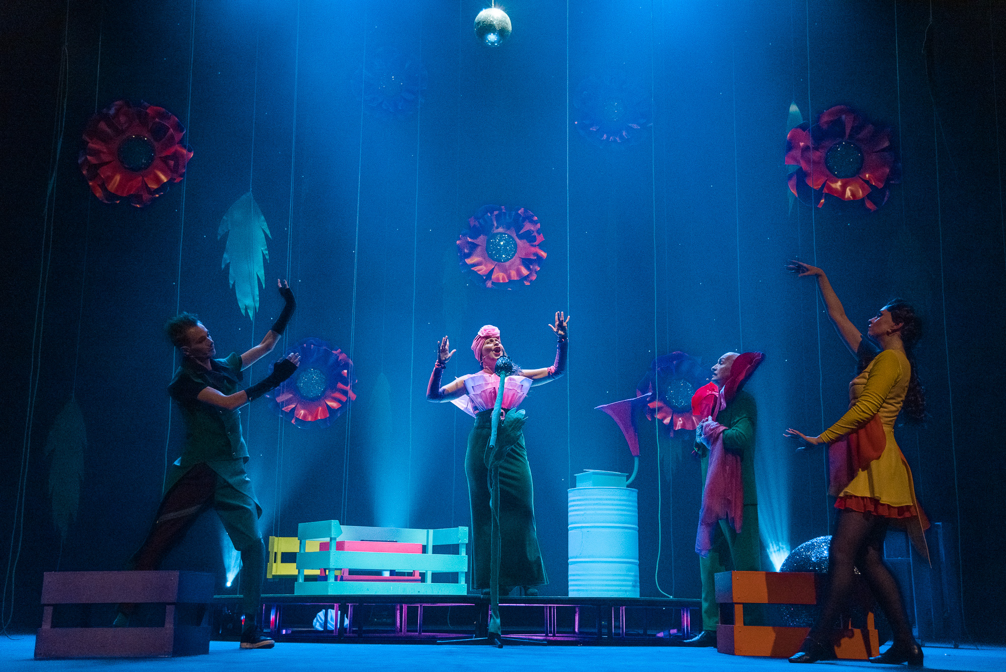 Постановка заявлена как сказка, однако это скорее мюзикл. Артисты исполняют музыкальные номера вживую, много танцуют и не забывают приглашать зрителей к ним присоединиться. Музыка очень разная: от романса до джаза, но все песни непременно на мелодичном белорусском языке.