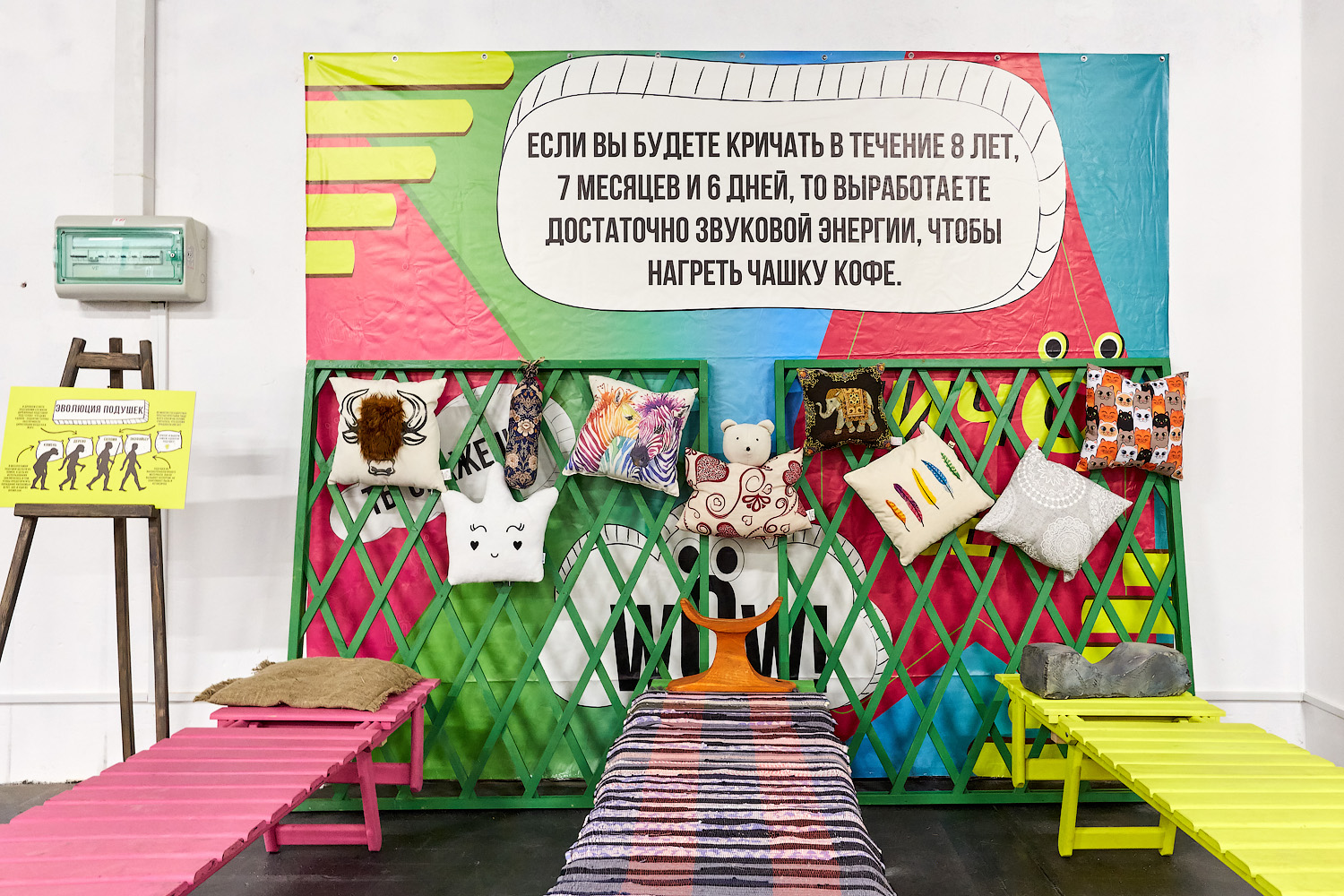Кажется, здесь есть все: музыкальные овощи, древний детектор лжи, деревянная подушка, костюм для охоты за медведем, призрачный город манекенов… Чего вы точно не встретите на выставке «НИЧОсе», так это что-то скучное и заурядное. Уже с первых минут, вам предстоит проверить свое обоняние на остроту – на первой локации на круглом столе надо угадать страну по запаху. Будьте внимательны! Одна из стран имеет чесночный душок, зато остальные пахнут просто восхитительно: мята, апельсин, лаванда…