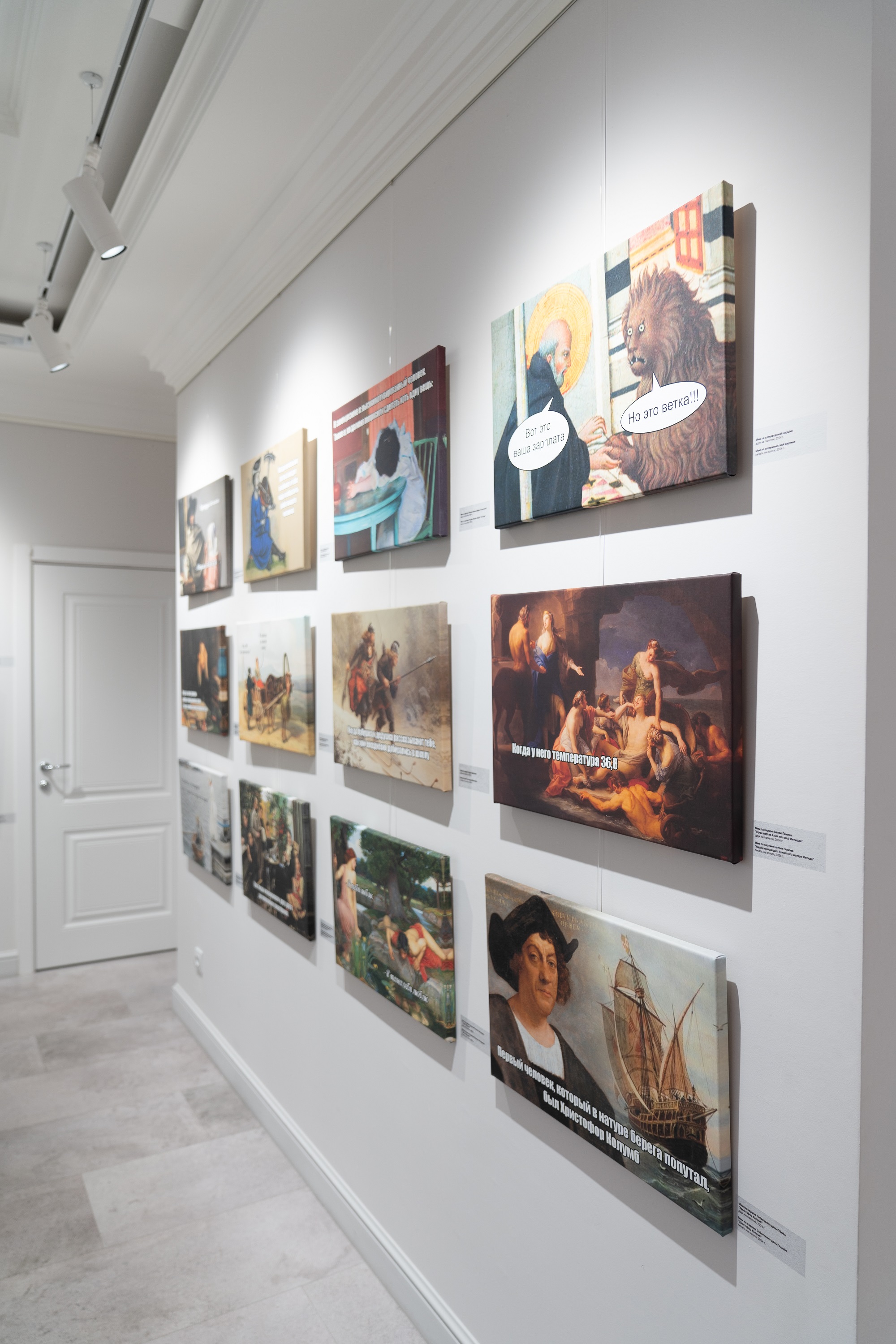 На выставке «Автостопом по мемасам» собрана коллекция из более чем 100 работ. Все они выполнены в различных техниках, в том числе с применением нейросети и других современных технологий. Для удобства все работы разделены на виды: