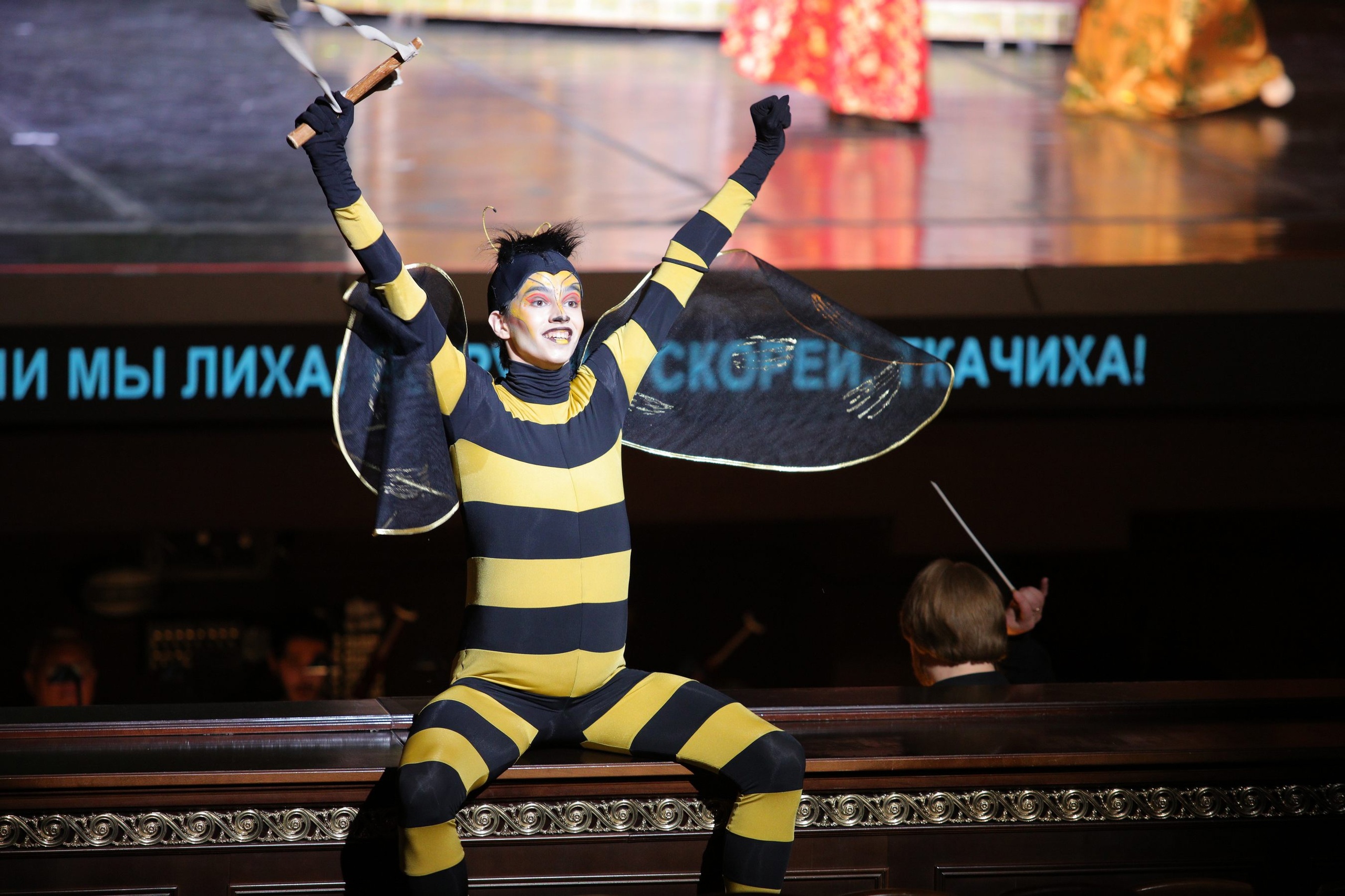 Весь спектакль, даром что он короткий и невесомый, изобилует удачными находками. К примеру, все дети были в восторге от игры Шмеля, летающего по сцене и безжалостно жалящего Повариху, Ткачиху, Бабариху. С не меньшим восторгом юные зрители принимали Белку-акробата. От этих сцен невозможно было оторвать глаза. Кстати, они вызывают бурю эмоций не только у детей, но и у взрослых.