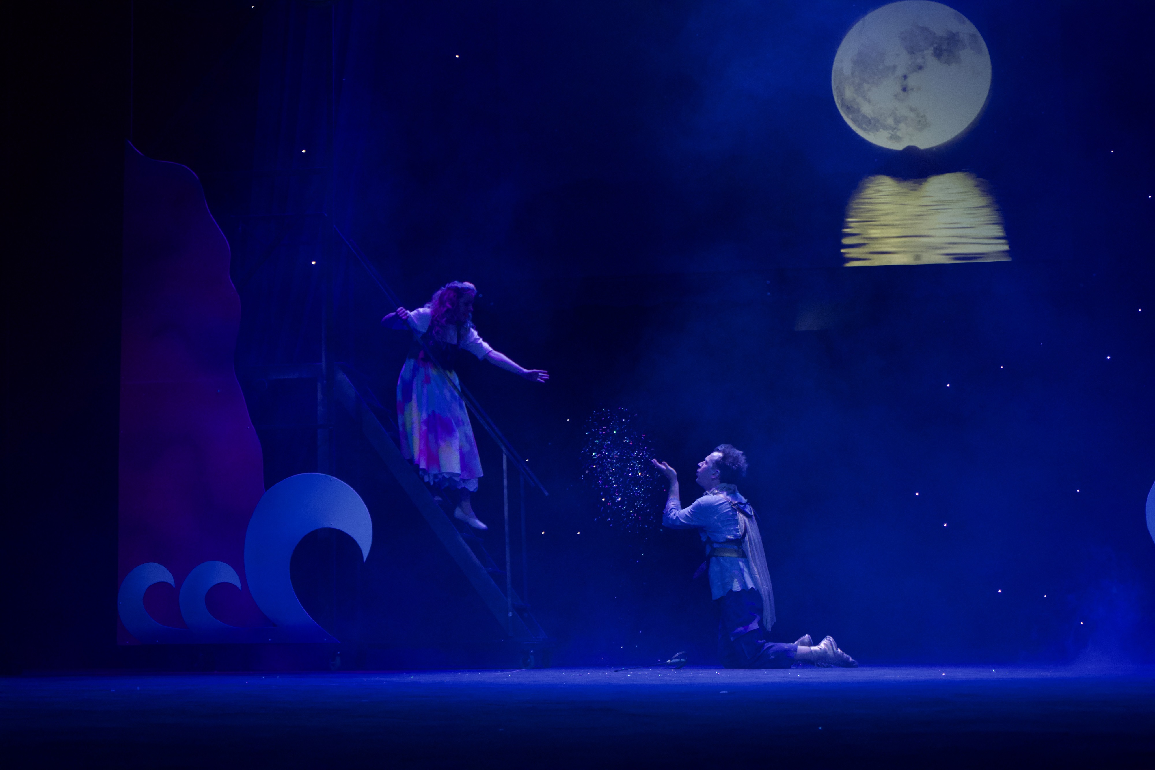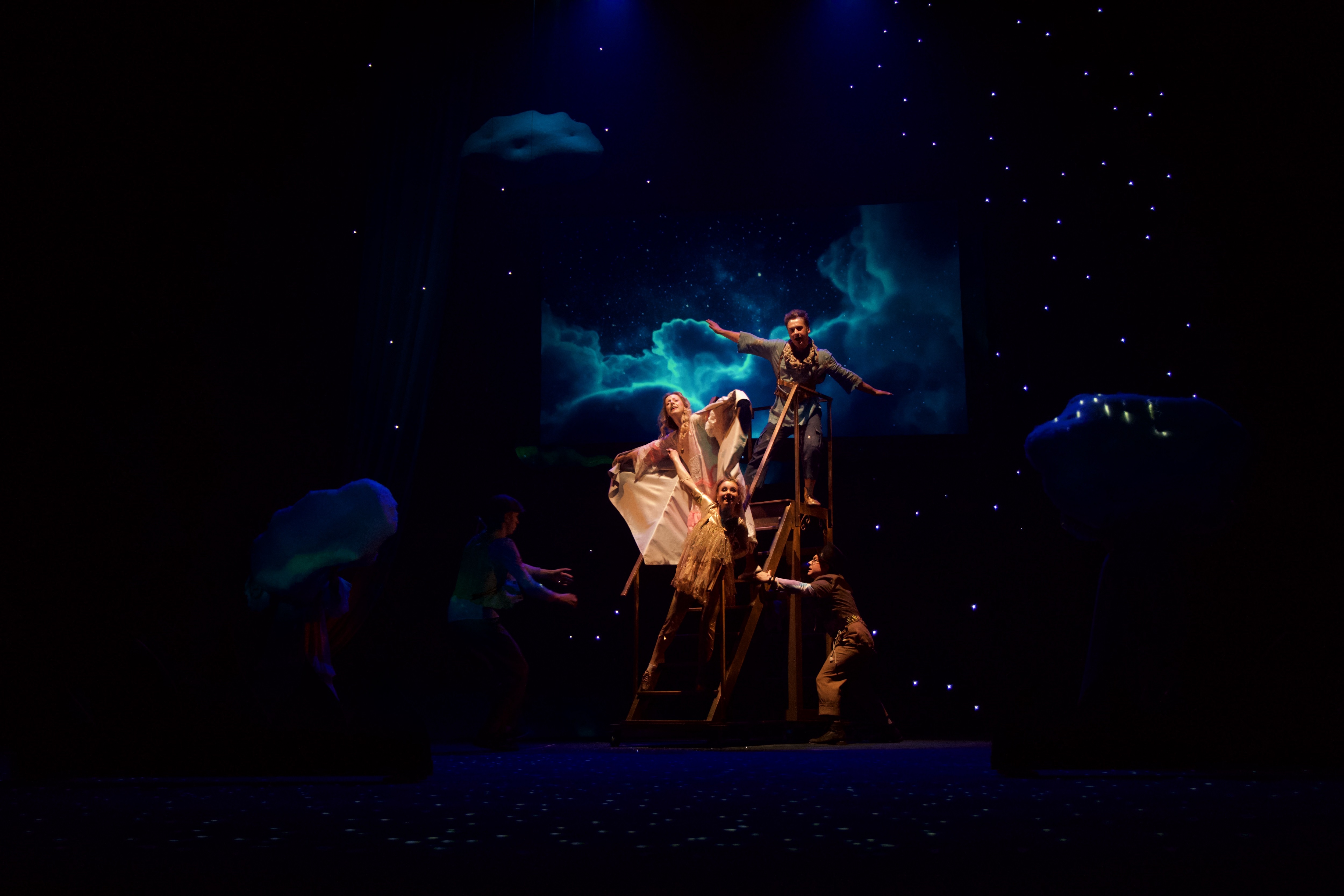 Артисты ТЮЗа достоверно и проникновенно воплощают своих персонажей: Венди – добрая и милая, Питер Пэн – веселый балагур и верный друг, потерянные мальчишки – маленькие благородные джентльмены, пираты – коварные злодеи, а фея Динь-Динь – задорная проказница (этот персонаж больше всего понравился зрителям). Постановка идет с музыкальными номерами: лирические баллады, веселые композиции и пронзительные соло. Аллегоричный номер Венди погружает зрителей в размышление о призрачности времени и необходимости взрослеть.