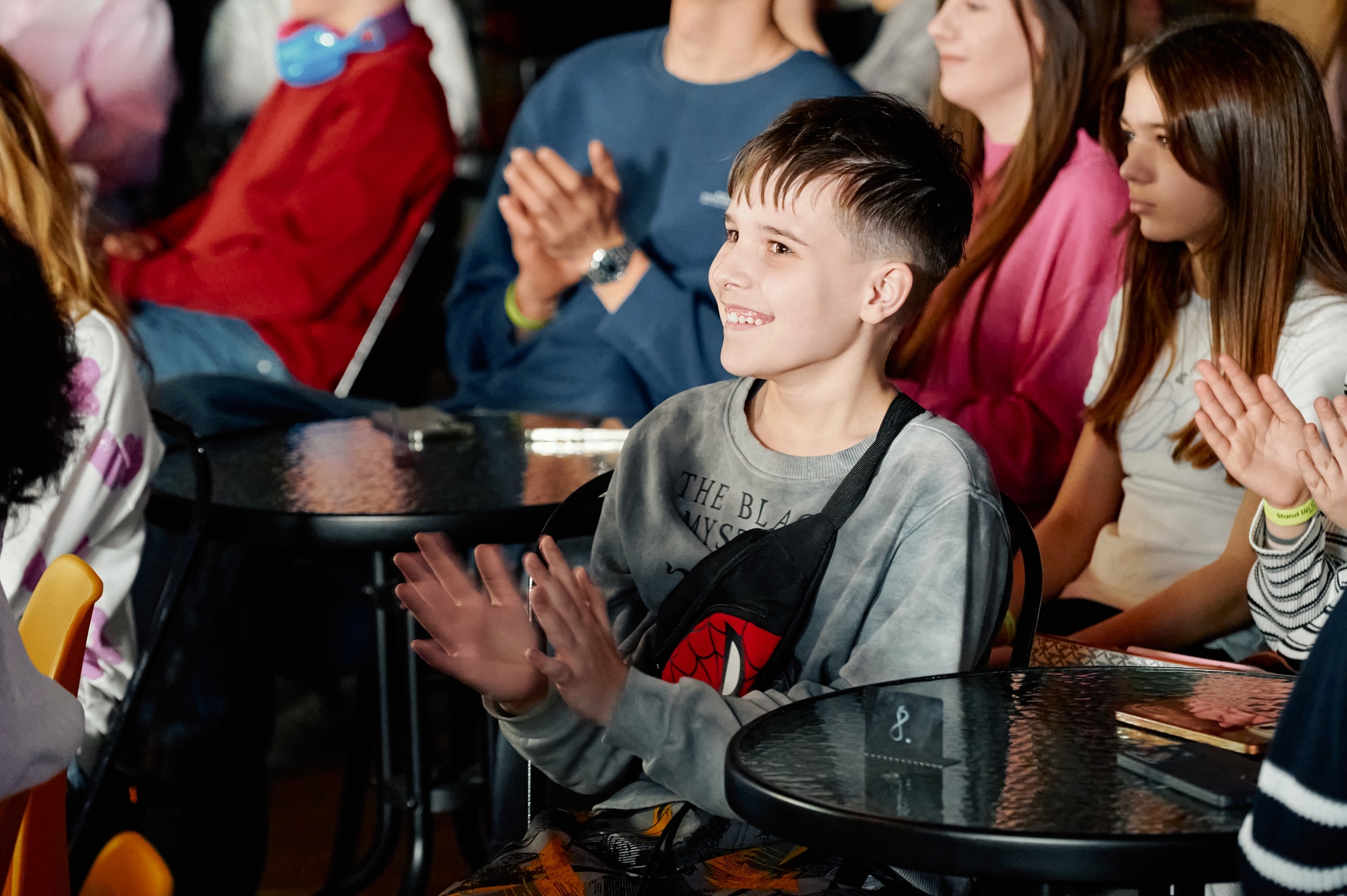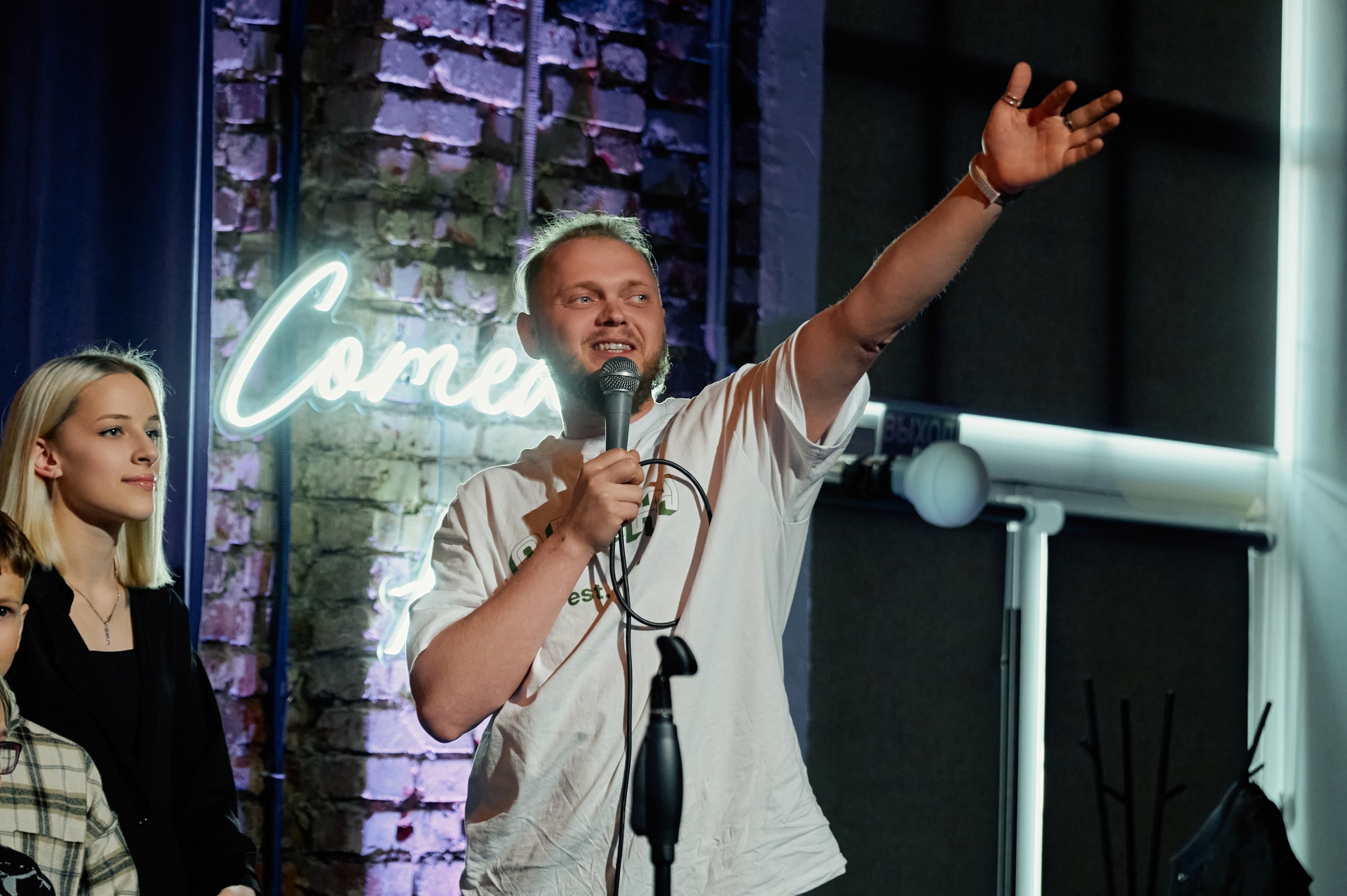 За особый вайб отвечал ведущий вечера — Алексей Василевский с харизмой суперзвезды. Он представлял каждого комика, подбадривал их на сцене и шутил со зрителями так, что даже самые серьезные родители не могли удержаться от улыбки.