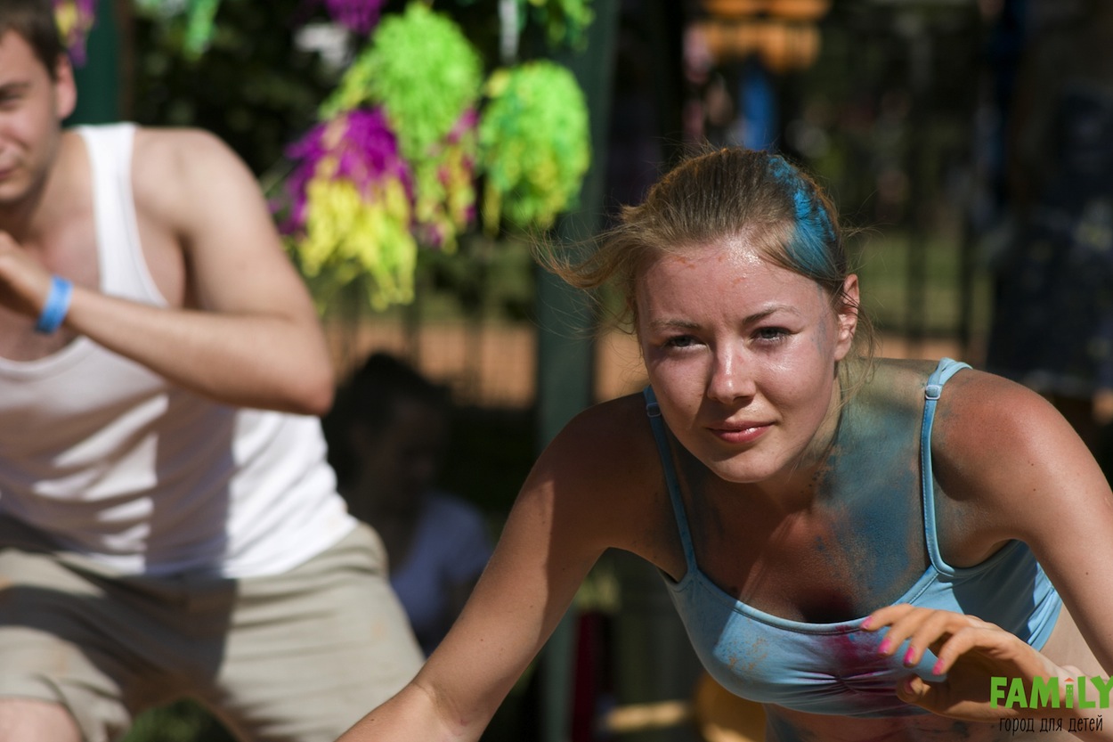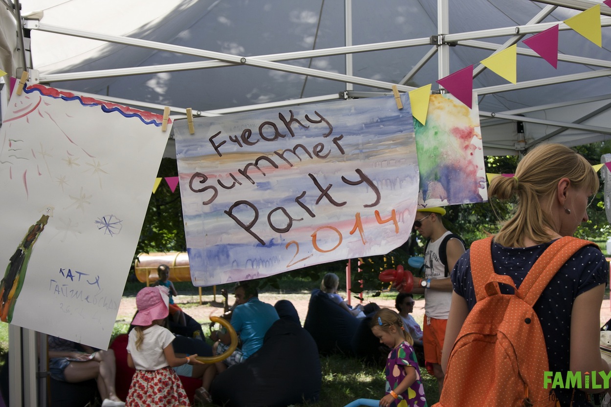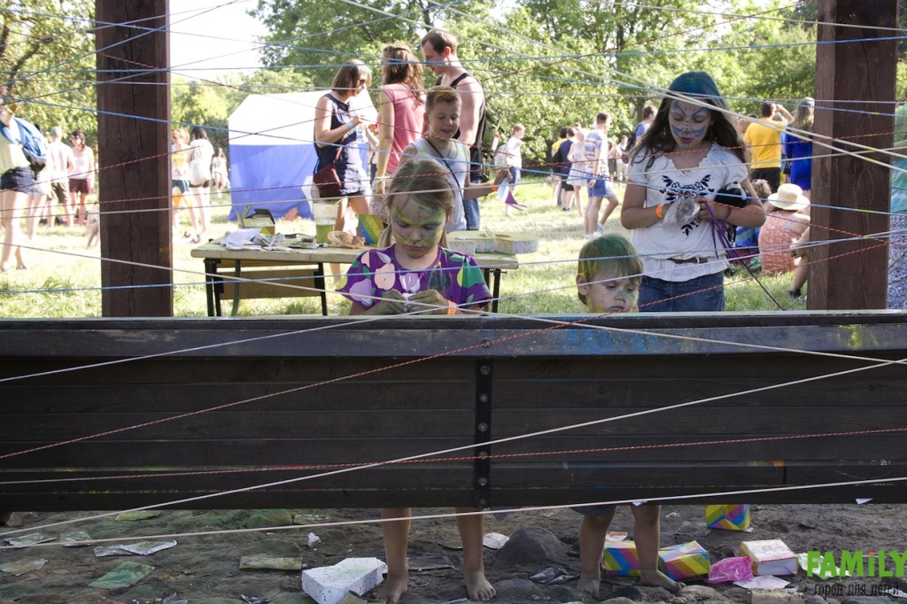 Гостей Freaky Summer Party встречали ярко и красочно во всех смыслах – на празднике в большом количестве использовались краски Холи. Любопытно, что обычно их применяют индусы на «Фестивале красок», или проще - на празднике первого дня Весны. Всех пришедших на входе посвящали во фрики, обильно обсыпая участников всеми цветами радуги, продолжить креативный наряд предлагали чуть поодаль, в зоне «Holi day space». Кроме этого, выдавали браслеты для свободного входа и выхода в любой момент. Детей также не обделили – каждому маленькому гостю на руки крепили оранжевый браслет, где родителей просили указать контактный телефон, по которому можно связаться, если малыш убежит за очередным заинтересовавшим его предметом. А убегать, уползать и передвигаться другими способами незаметно от родителей было куда.