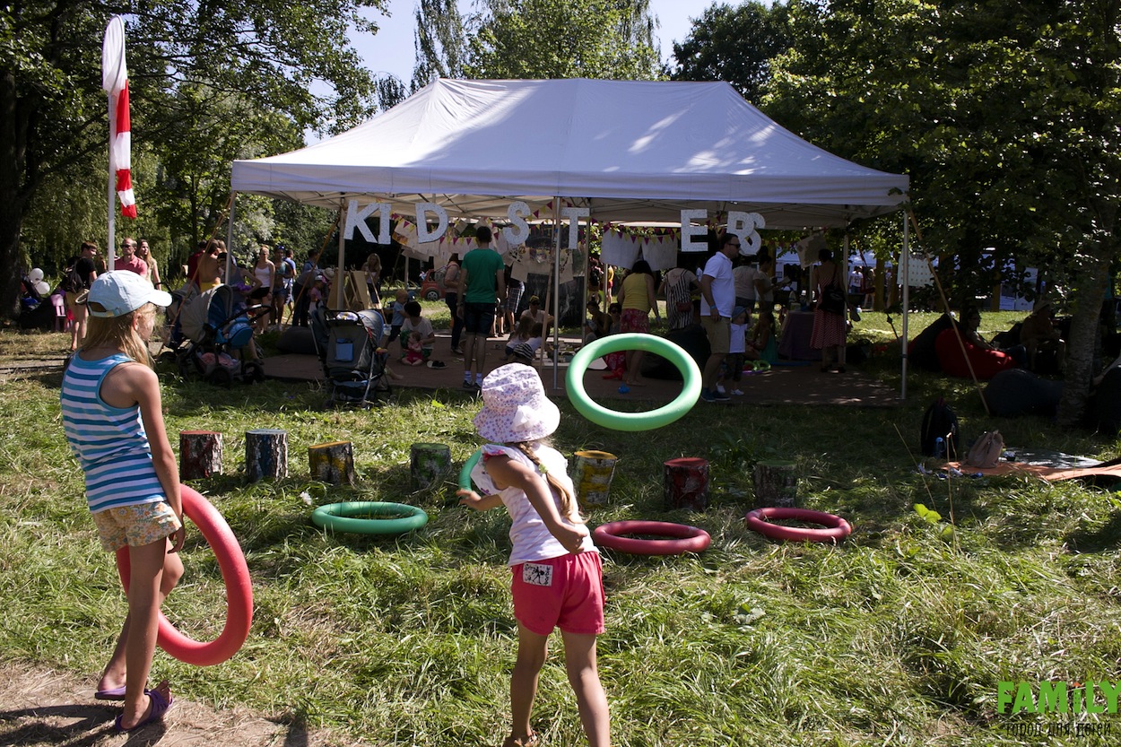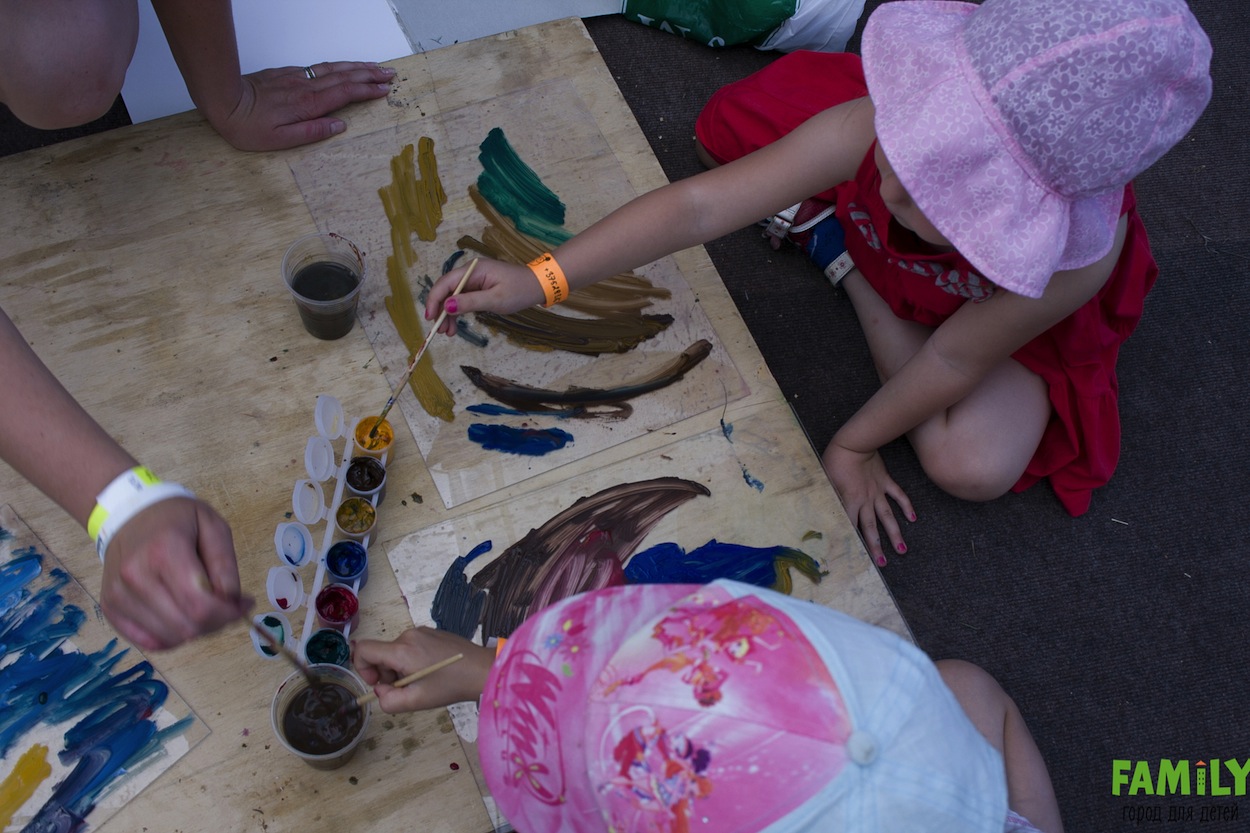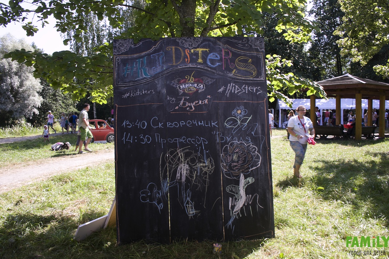 Самым главным детским местом на арт-пикнике стала зона «Kidsters», где не было громкой музыки, а царила атмосфера радостного хаоса. Под открытым небом были расставлены фотозоны, батуты, качели, мольберты, огромная меловая доска, можно было выпустить целые облака мыльных пузырей. В огромной палатке детей ждали творческие мастер-классы по квиллингу, войлоку, бисеру. Для малышей и не только по всей закрытой от прямых солнечных лучей площадке были разложены краски, кисти, фломастеры, бумага и стекло, на которых можно было рисовать бесконечно долго.