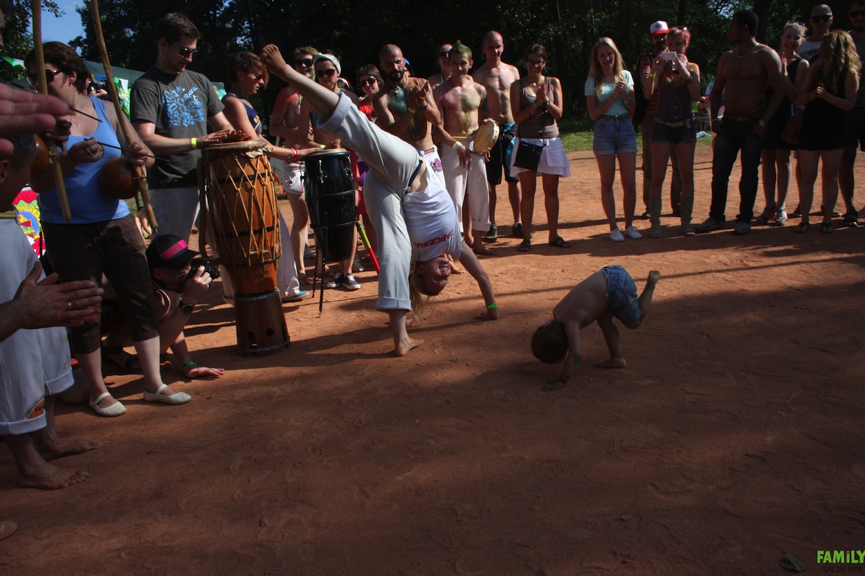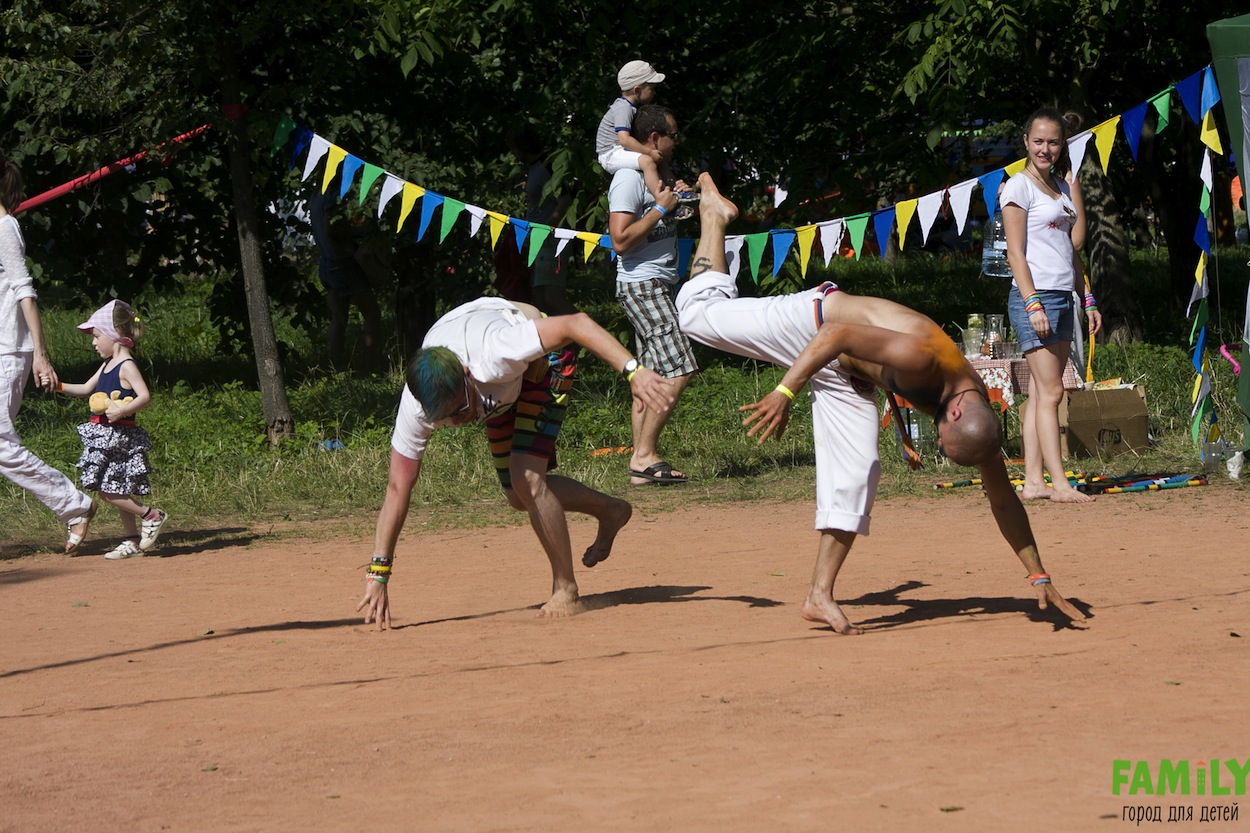 Не менее интересной и яркой для детей стала встреча с капоэйристами. Здесь звучала зажигательная бразильская музыка, красивые люди танцевали замысловатые боевые танцы и тренировали новичков. Был даже один смельчак, вызвавший на бой настоящего майэстро, который позволили малышу победить.