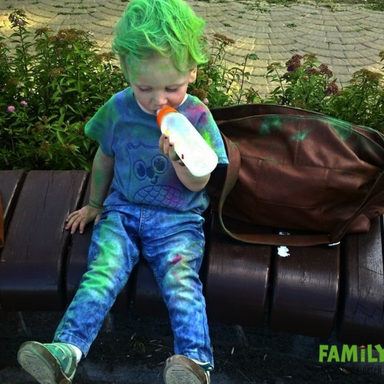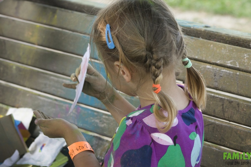 Порисовав на бумаге, самое время разукрасить себя и своих родителей в зоне «Holi day space». Здесь гостей ждали волонтеры с полными руками цветной краски Холи, обсыпая всех встречных и даже не успевая ответить на вопрос: «Отстирывается ли краска?». После длительных переговоров, получив положительный ответ, все выдыхали и с новой энергией просили их «разрисовать как можно ярче и красочней». Некоторым малышам так понравилась игра, что их невозможно было вытащить с площадки. Не желая смиренно идти за родителями, детвора, как правило, не могла успокоиться до последнего пакета. Кстати, в конце фестиваля малыши провели ревизию каждого пакетика и только после того, как последние крохи были высыпаны, успокаивались и уходили домой.