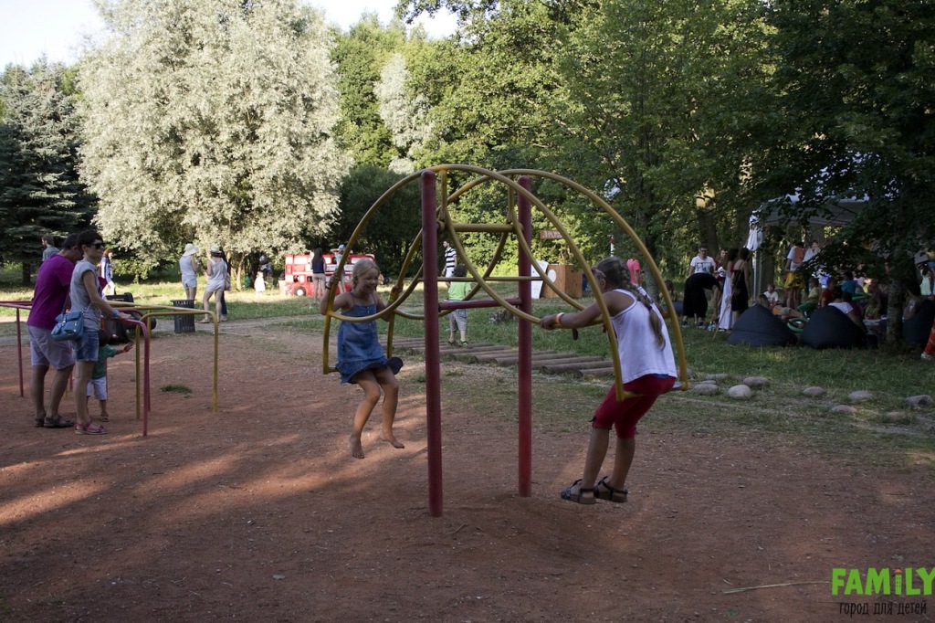 Кстати, детская зона находилась на настоящей детской площадке с перелазами, качелями, лабиринтами, песком.