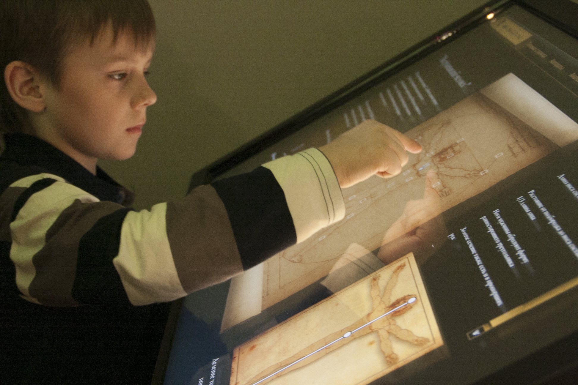 в каждом зале стоят интерактивные табло, которые знакомят детей с основными