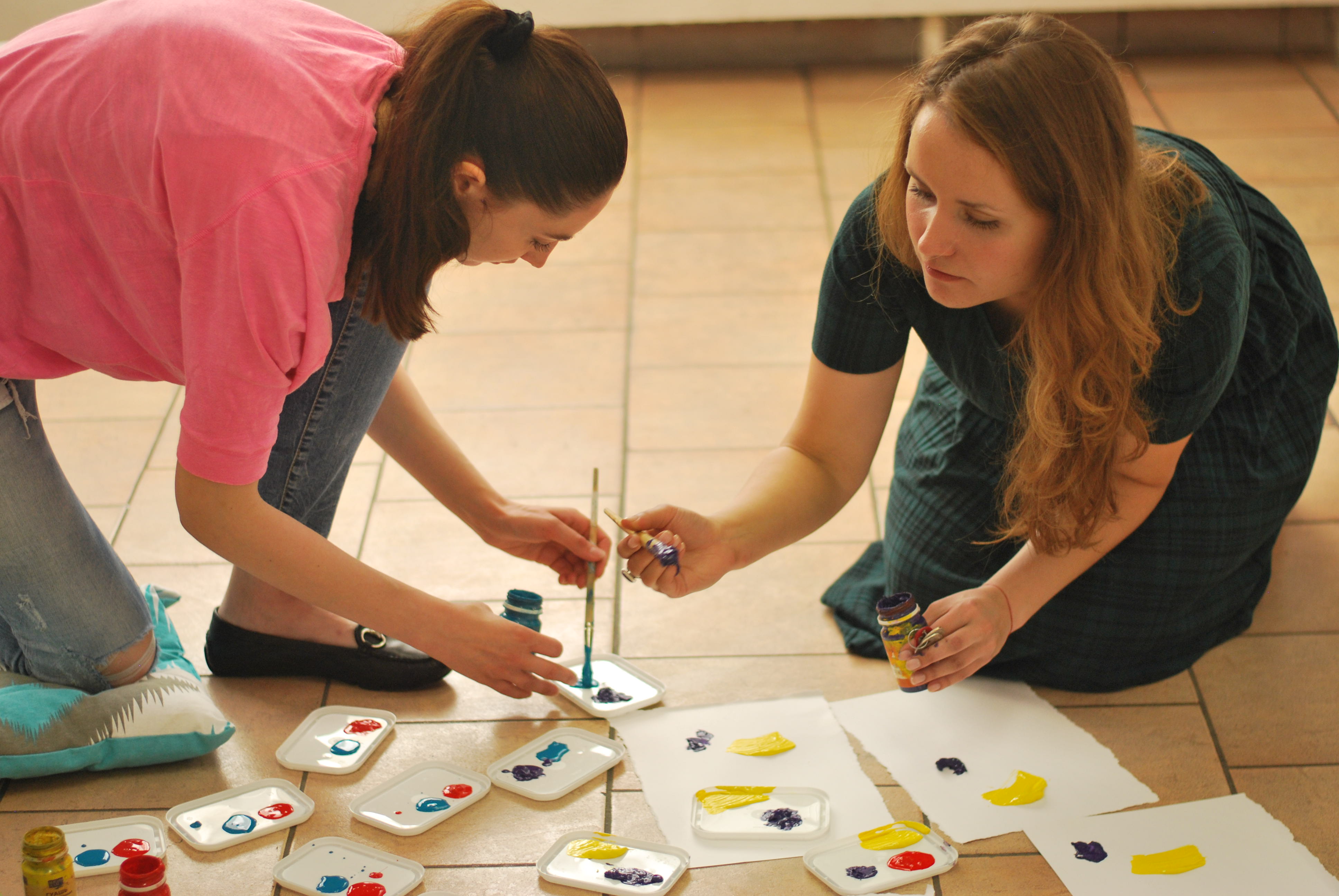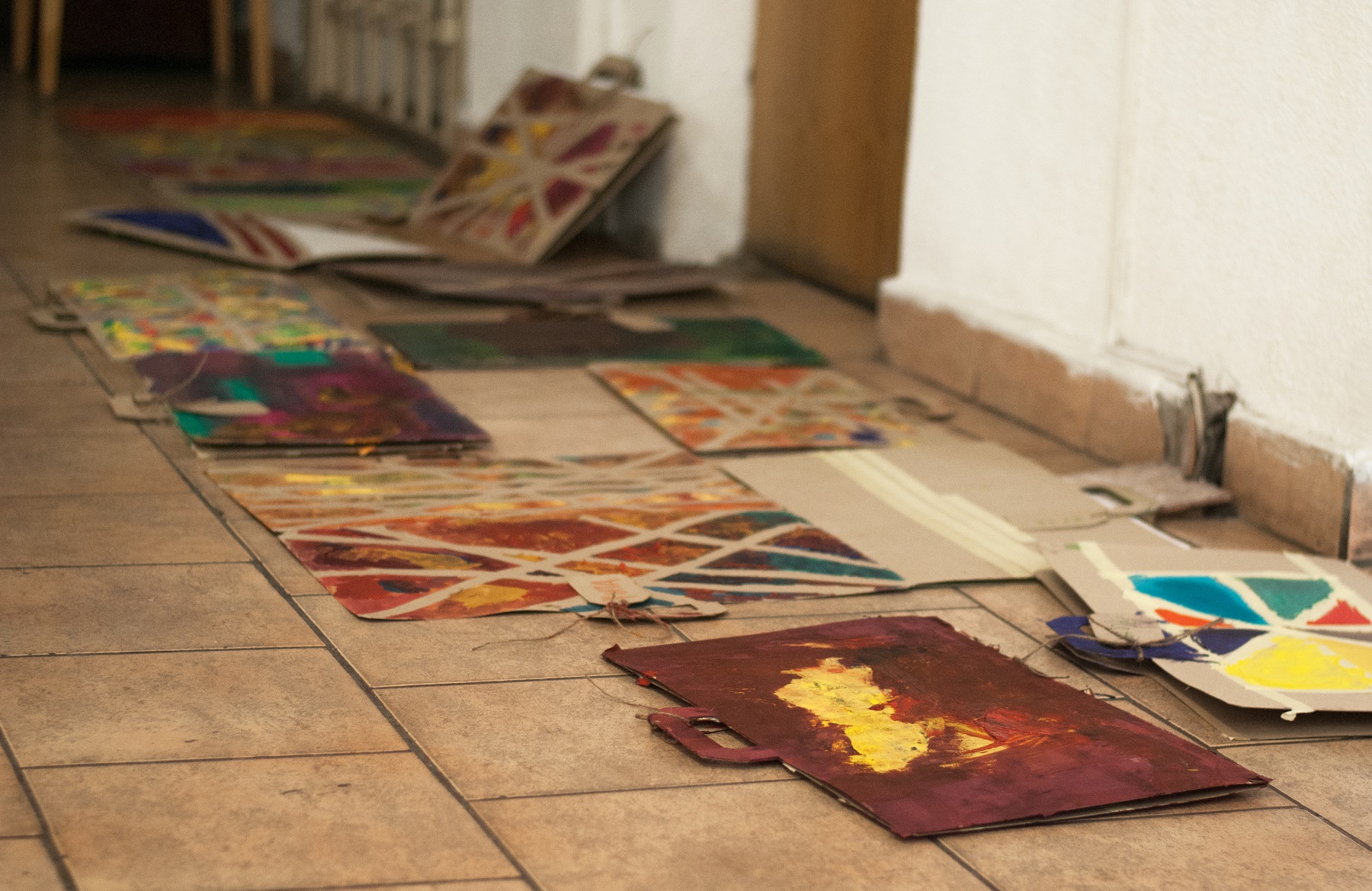 отдыхающими. Кто-то остался рисовать за столами, другие переместились на пол,