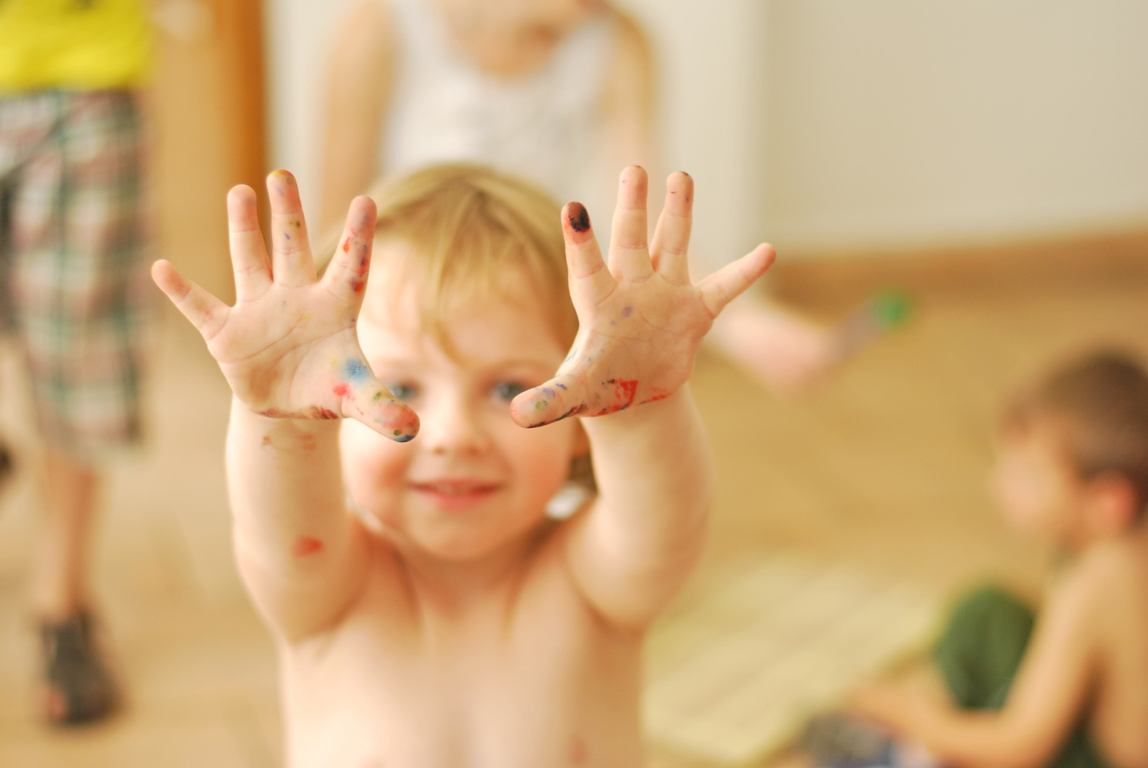 гуашь и акрил от детской одежды отстирываются плохо. И, конечно же, на встречу