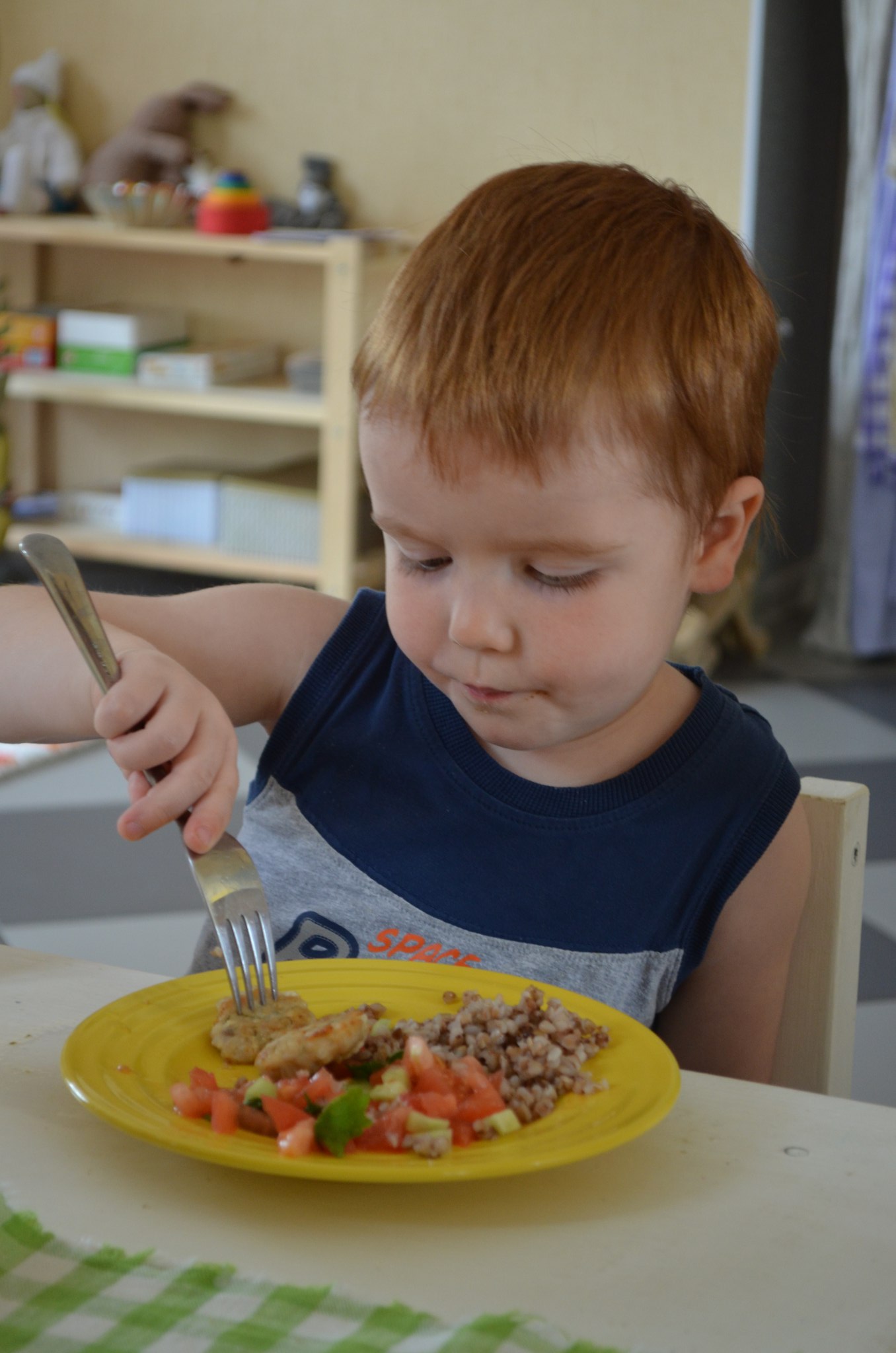 2) Учитывать желания ребенка там, где это возможно – не заставлять есть то, что не хочется, не играть в игры, которые не нравятся, помочь самому выбрать одежду. Это поможет почувствовать самостоятельность и снизит тревогу. А кушать ребенок начнет сам, когда почувствует аппетит после насыщенного активного дня.