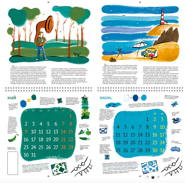На страницах этого календаря вы познакомитесь с удивительным музыкантом Филиппом, который весь год колесит в своем фургоне. Но колесит не просто так, а каждый месяц красит свой «дом на колесах» в новые цвета.