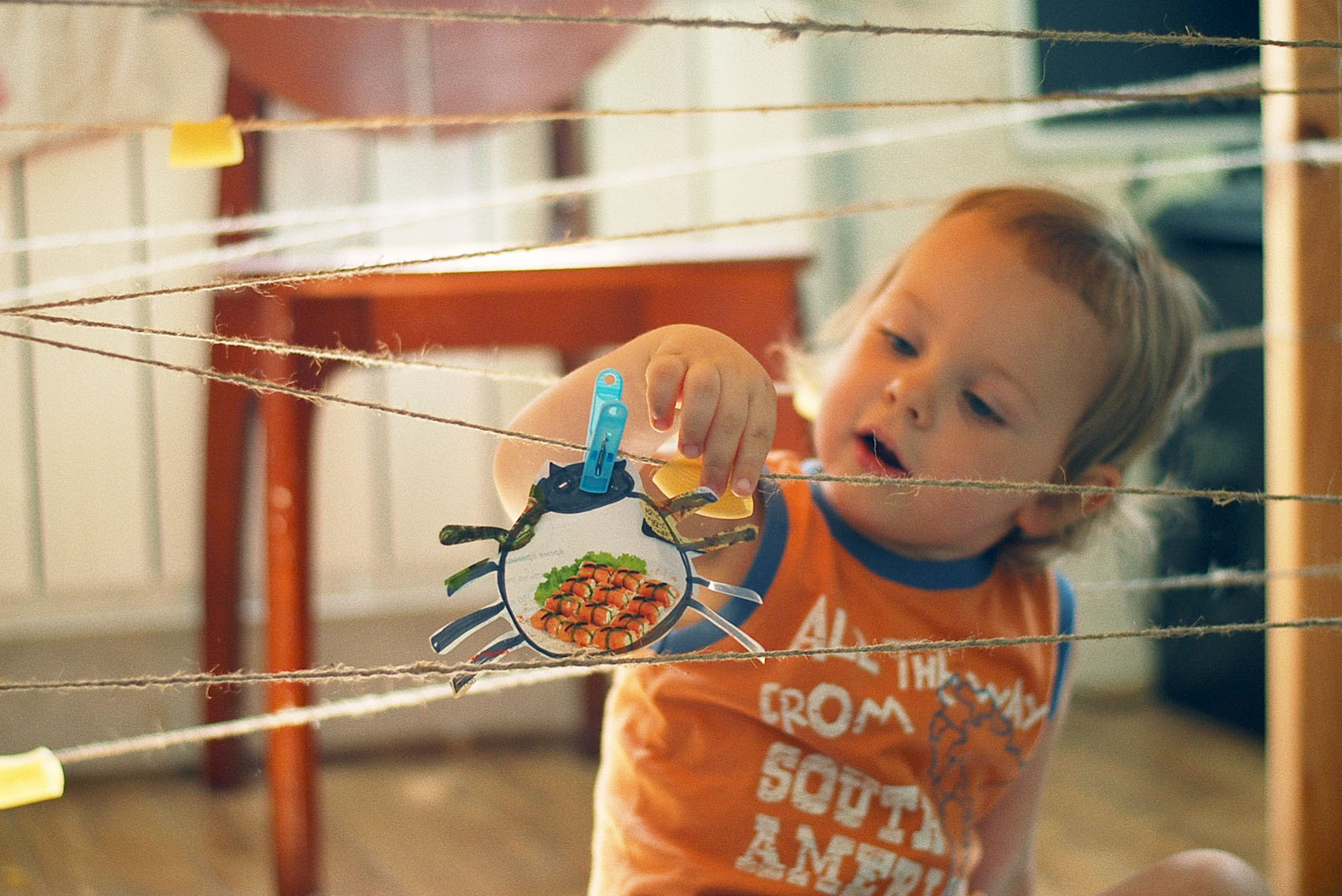 ножки нашего кухонного стола были запаутинены веревками, и Егор обитал