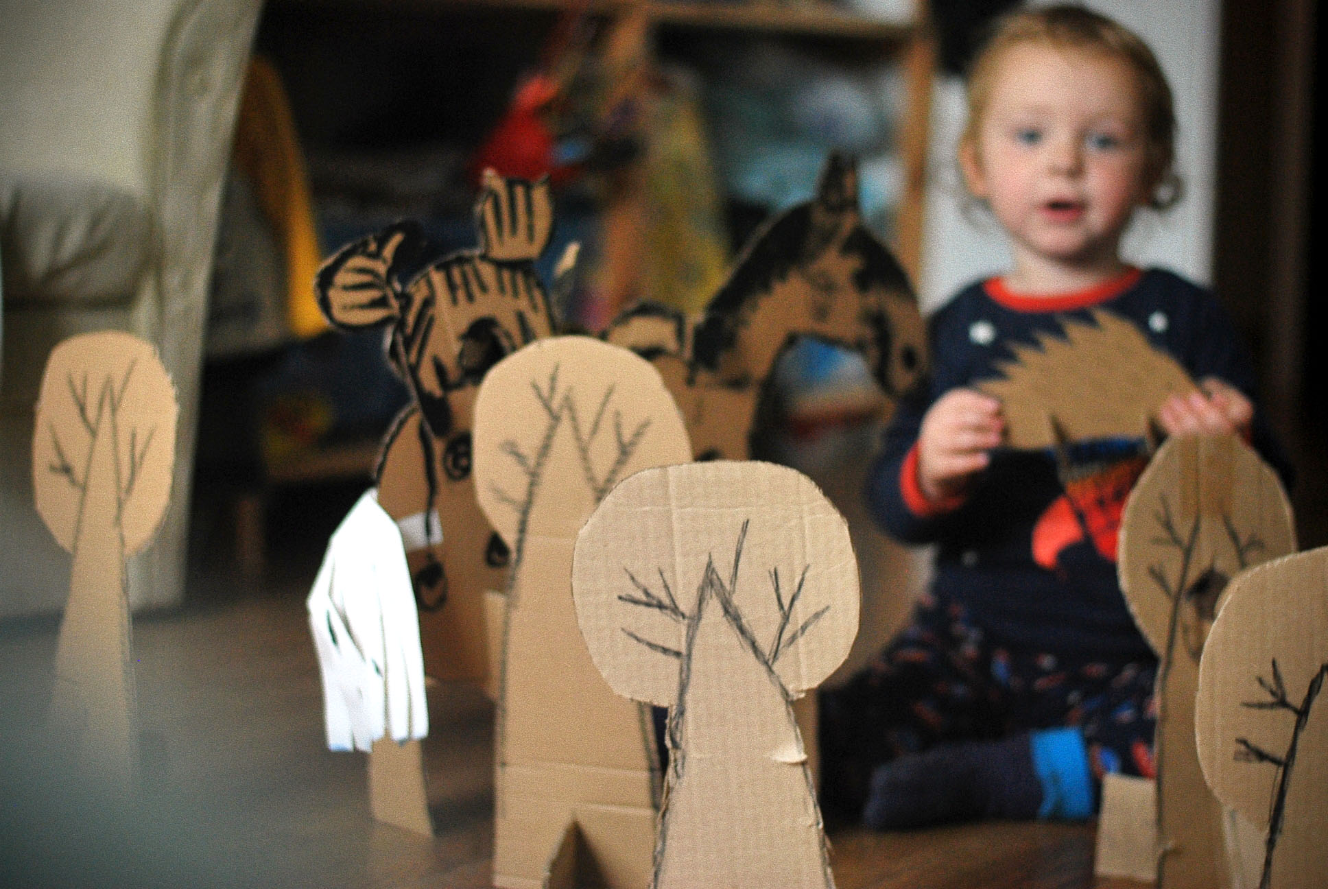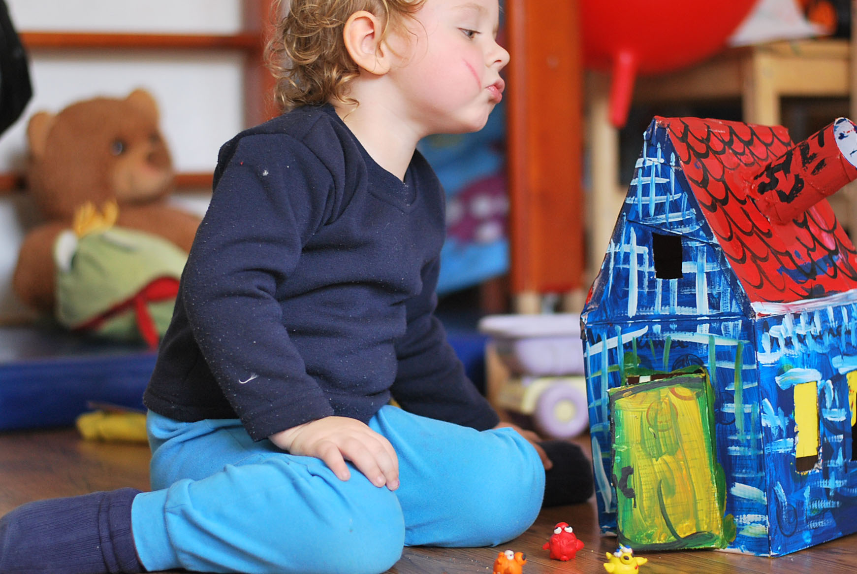 по мотивам прочитанной перед дневным сном сказкой. Когда проснулся, Егор вместо со мною лепил ее обителей, а в качестве волка выступал собственной персоной,