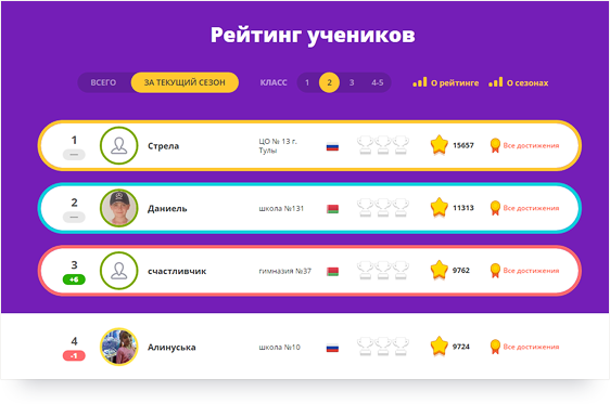 Нужно признать, что юные «тестировщики» освоились мгновенно и уже через 10 минут показывали родителям свои «персональные страницы достижений», места в рейтинге учеников и полученные награды.