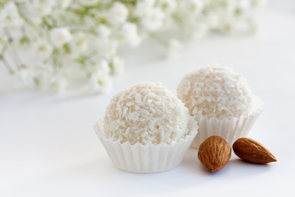 Так и получаются красивые кокосовые шарики, напоминающие рафаэло.