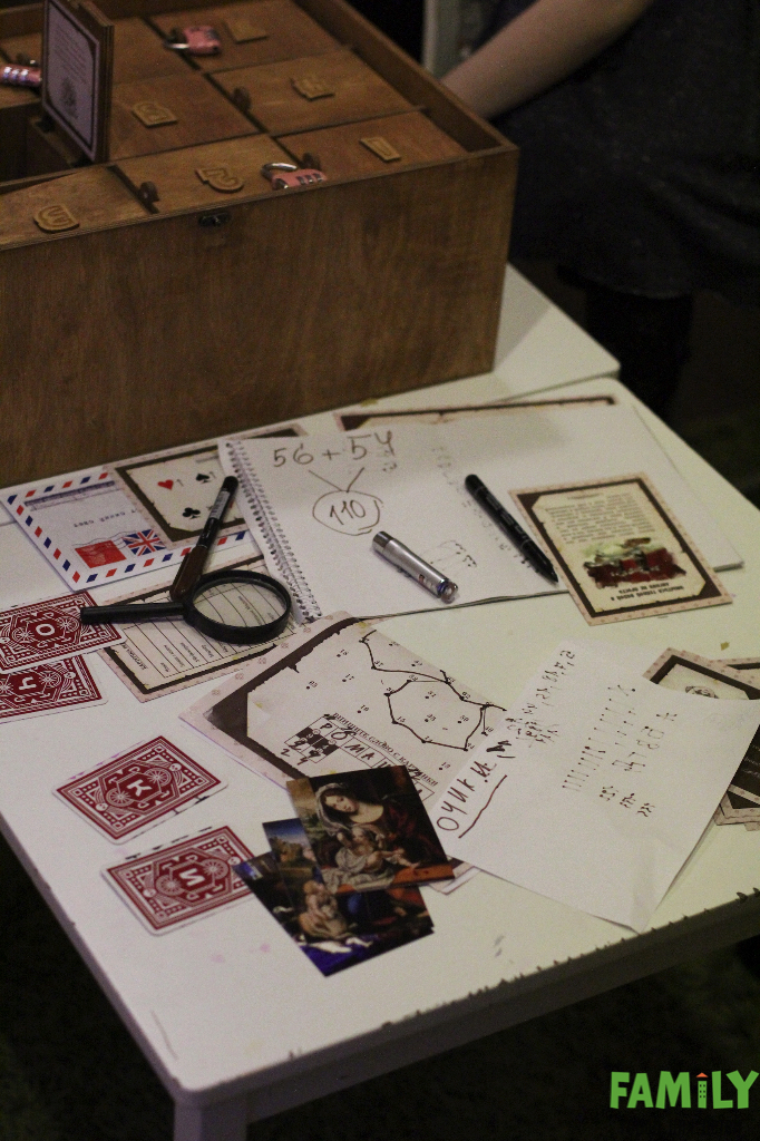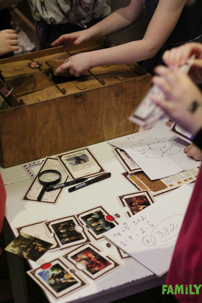 Также советуем внимательно прочитать, на какой возраст и на сколько человек рассчитана игра, чтобы никто не остался без дела и был вовлечен в процесс. В детских квестах придерживаться возрастных ограничений очень важно, так как коробка малышам может показаться слишком сложной. «Пропавшая картина» рассчитана на детективов от 8 лет, поэтому ребята играли, не отрываясь на посторонние дела.
