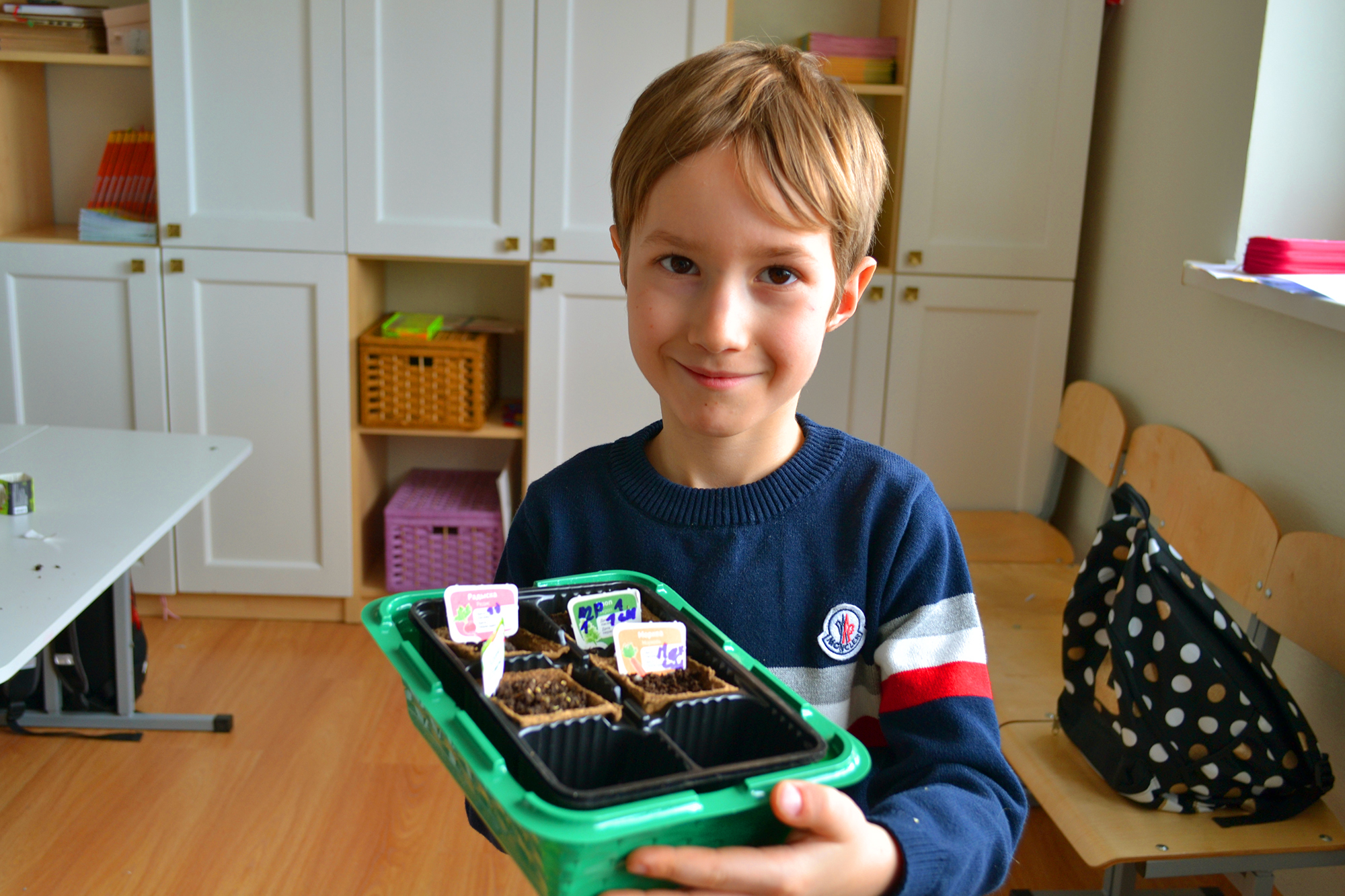 За время действия акция «Краіна Вітаміна» успела объединить за общим занятием семьи, офисы, школы и сады. В наборе, который выдают за покупки в «Евроопт», есть все для выращивания полезного растения: семена, торфяная таблетка, горшочек. Но, кажется, здесь спрятано гораздо больше. Об этом ученики семейно-образовательного комплекса «Город солнца» узнали на занятиях по природоведению, когда всей школой создавали свои мини-огородики. Преподаватели Любовь Боброва и Евгений Исаченко рассказали, что они нашли в горшочках «Краіна Вітаміна».