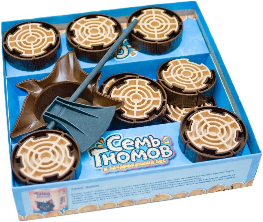 Правила: в наборе 9 блоков ствола, более 36 кусков коры, пенек и топор. Прежде чем начать игру куски коры нужно состыковать с блоками ствола и разместить на пеньке один за другим. Задача игроков аккуратно срубить кору, не повреждая при этом дерево. Если участки ствола сбиты, то у игрока снимаются очки. Так что будьте внимательны и аккуратны. Победителем станет самый ловкий дровосек.