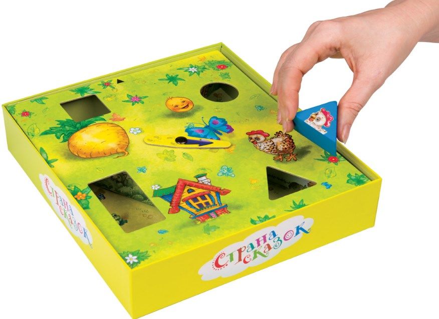 Правила: судя по описанию, это игра 4 в 1. Все они основываются на известных русских сказок, знакомых малышам с раннего возраста «Колобок», «Курочка Ряба» и прочие. Жестких рекомендаций по игре нет, так как дети младшего возраста вряд ли будут им подчиняться. Так что можно сказать, что «Страна сказок» - это игра, развивающая фантазию родителя, предлагая различные варианты начиная от сортера и заканчивая изучением геометрических фигур, развитием речи или тренировкой счета.