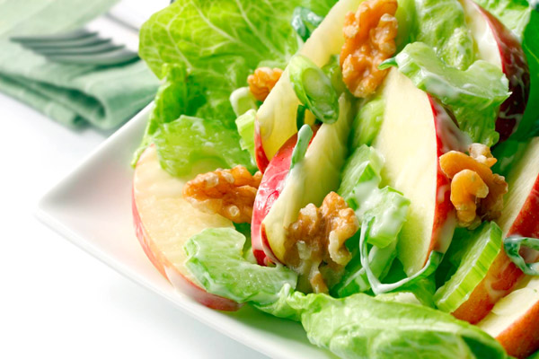 Яблоки отлично подходят для салатов. Ниже один из самых простых рецептов. Возможно, он знаком вам в другом исполнении. На самом деле вариантов очень много.