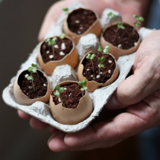 Саженцы в яичной скорлупе или посаженные в дыню и тыкву продолжают эко-тему.